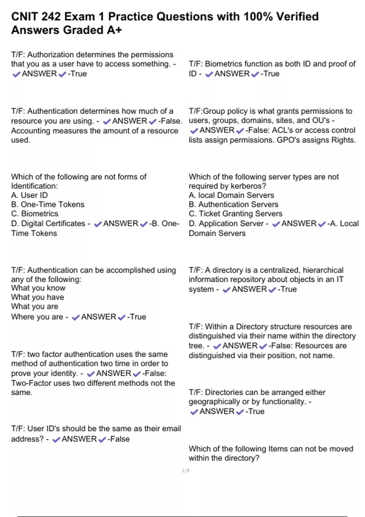 , CNIT 242 Exam 1 Practice Questions with 100% Verified