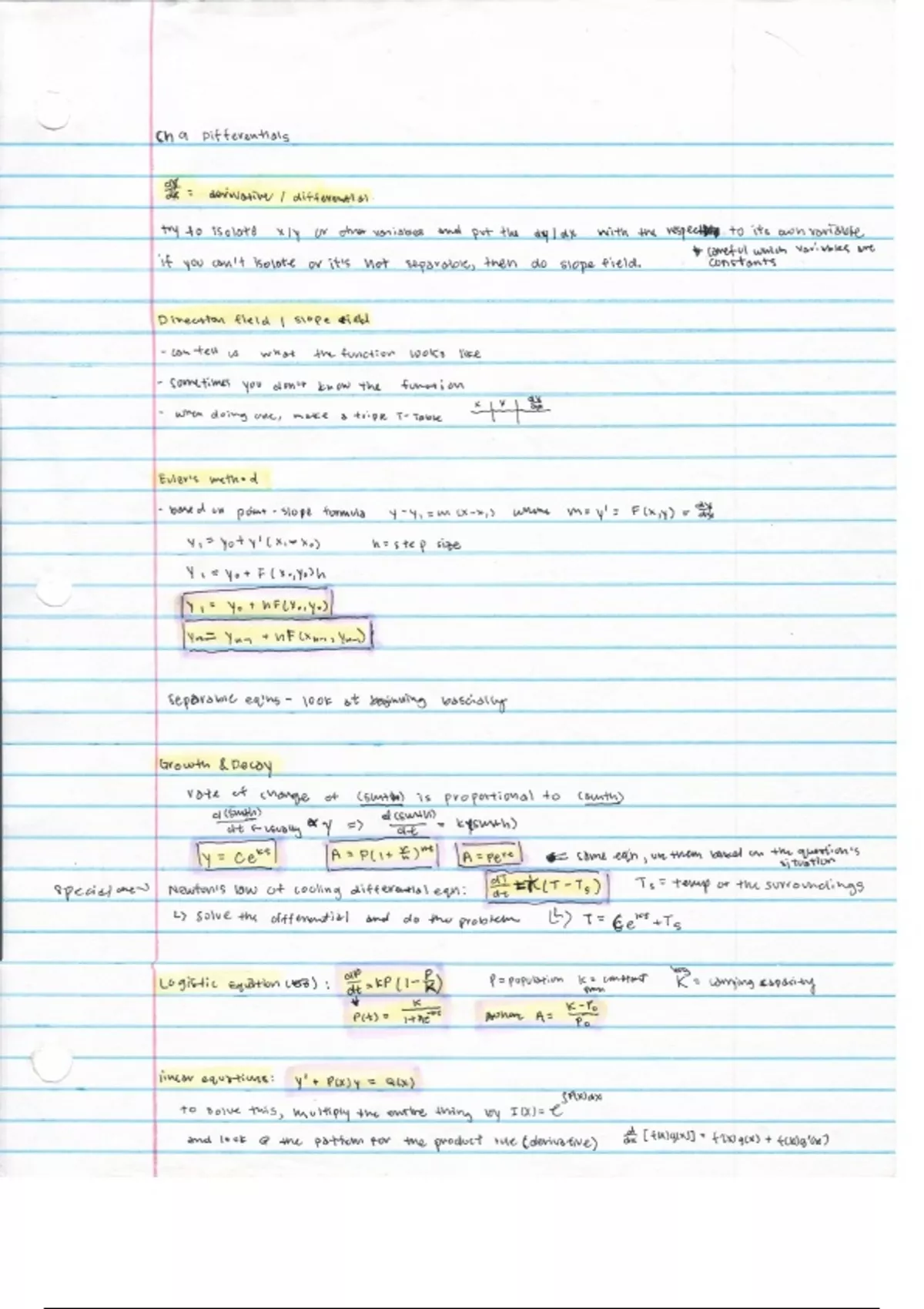 A summary sheet covering the highlight of Differentials from Ch 9 of the textbook, Calculus, by James Stewart