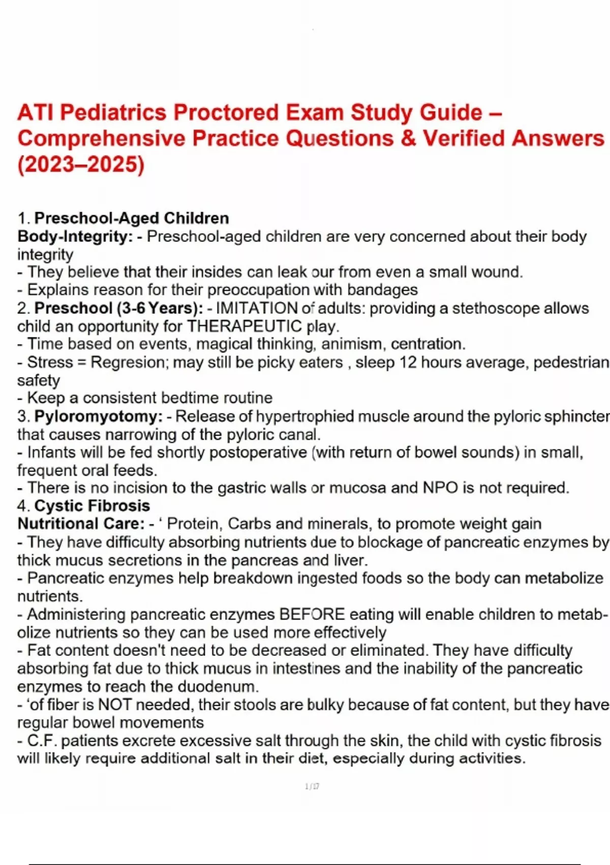 ATI Pediatrics Proctored Exam Study Guide – Comprehensive Practice Questions & Verified Answers (2023–2025).pdf