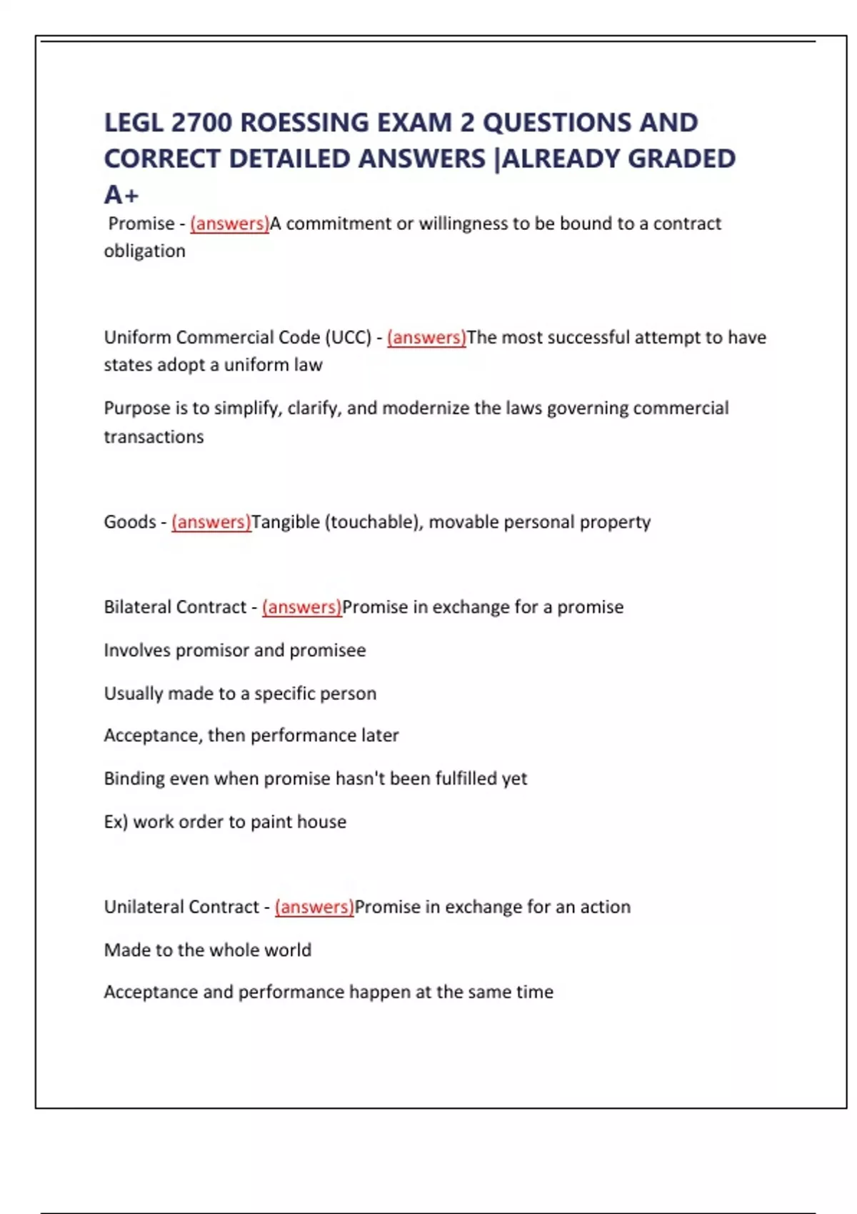 Bilateral Contract - (answers)Promise in exchange for a promise