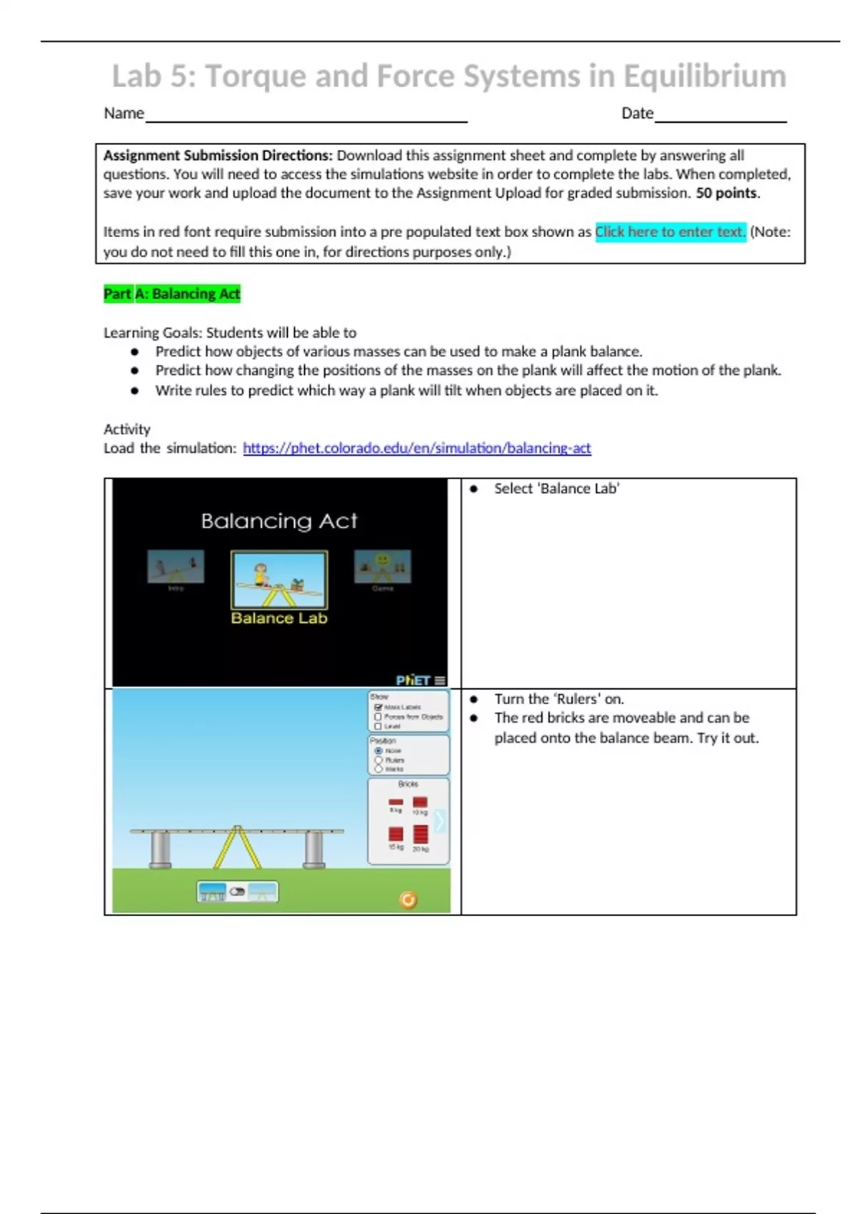 Physics Lab 5 Activity Assignment: Torque and Force Systems in Equilibrium Portage 2025