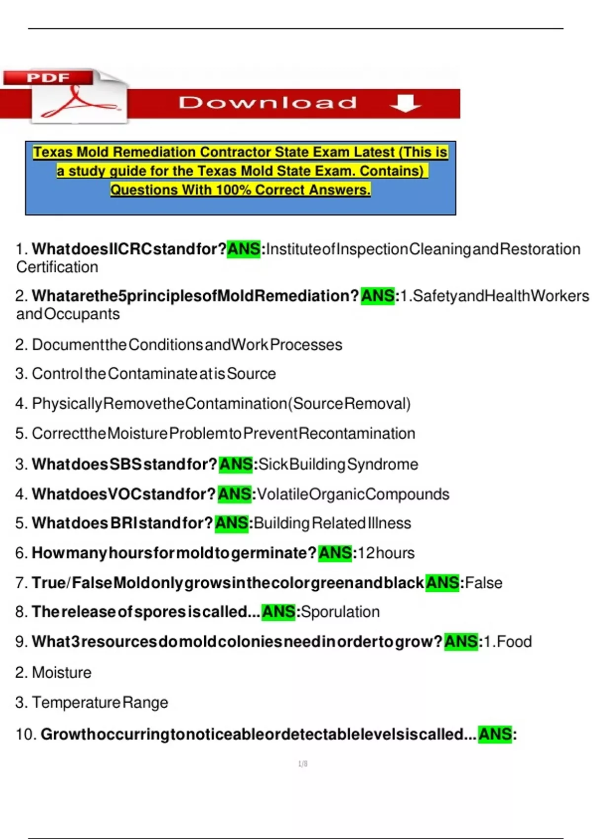 Texas Mold Remediation Contractor State Exam Latest (This is a study guide for the Texas Mold State Exam. Contains) Questions With 100% Correct Answers.Texas Mold Remediation Contractor State Exam Latest (This is a study guide for the Texas Mold State Exam. Contains) Questions With 100% Correct Answers.Texas Mold Remediation Contractor State Exam Latest (This is a study guide for the Texas Mold State Exam. Contains) Questions With 100% Correct Answers.