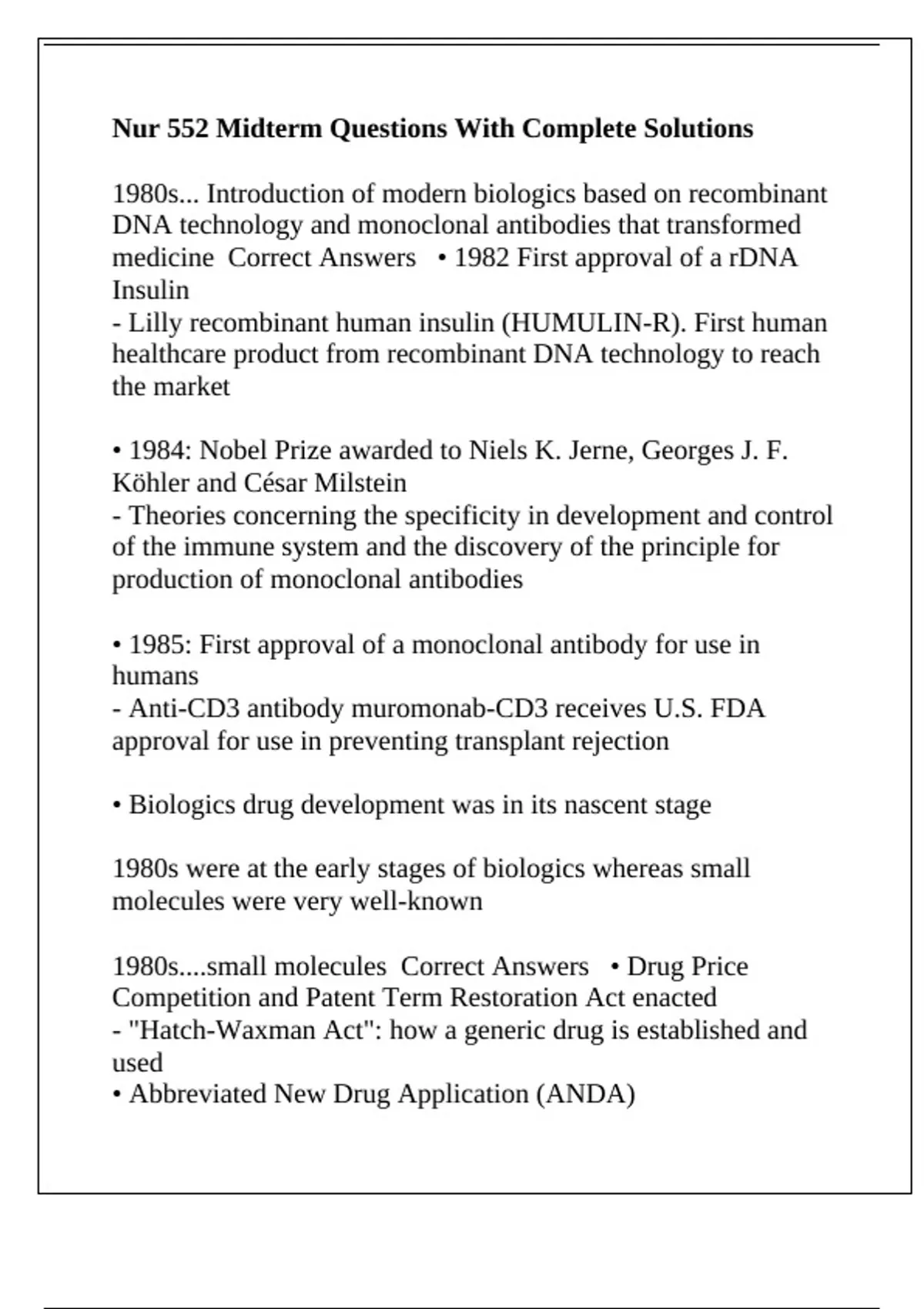 Nur 552 Midterm Questions With Complete Solutions