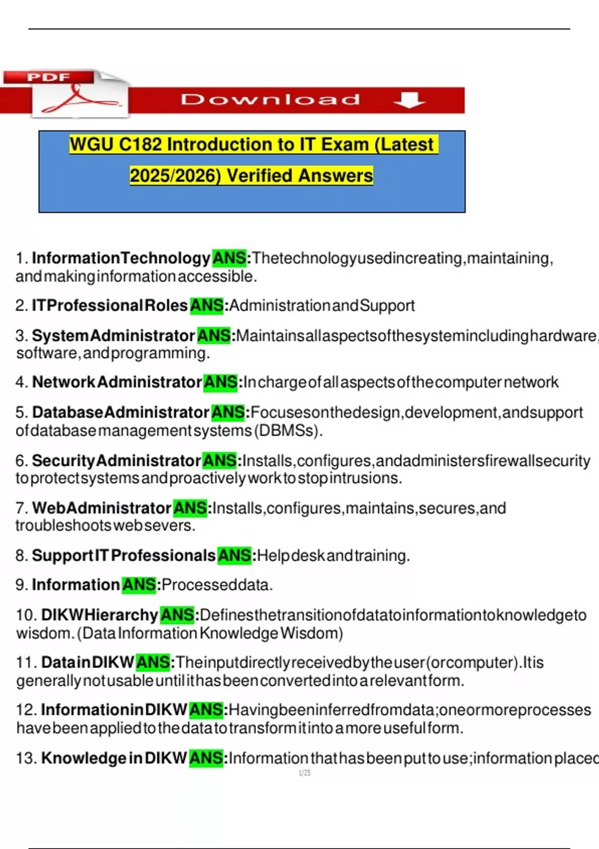 WGU C182 Introduction to IT Exam (Latest 2025/2026) Verified Answers