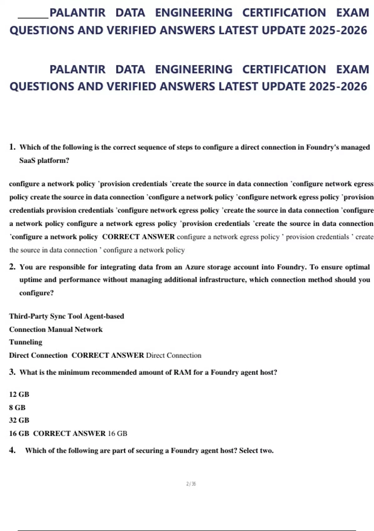 2. You are responsible for integrating data from an Azure storage account into Foundry. To ensure optimal