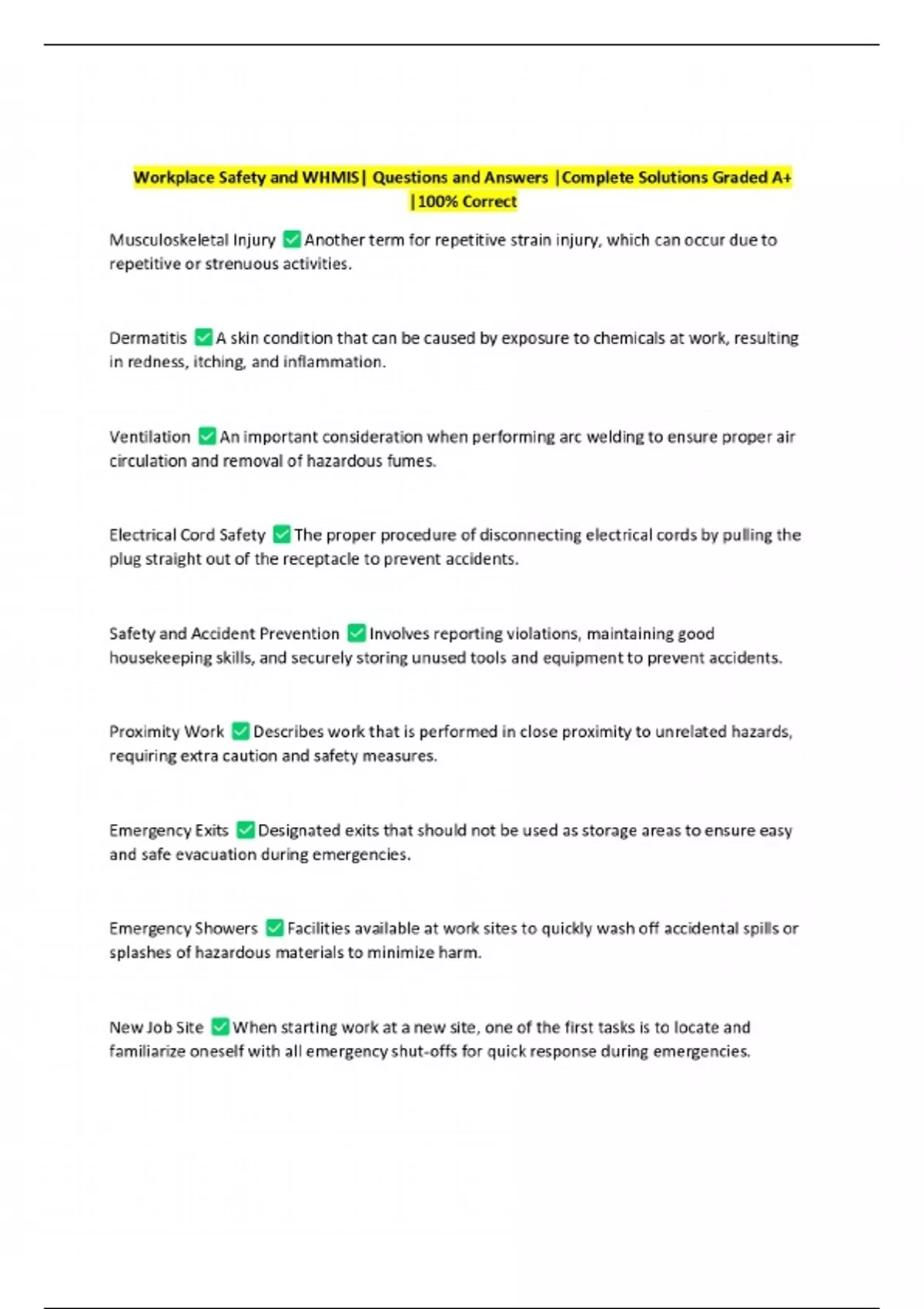 Workplace Safety and WHMIS| Questions and Answers |Complete Solutions Graded A+ |100% Correct