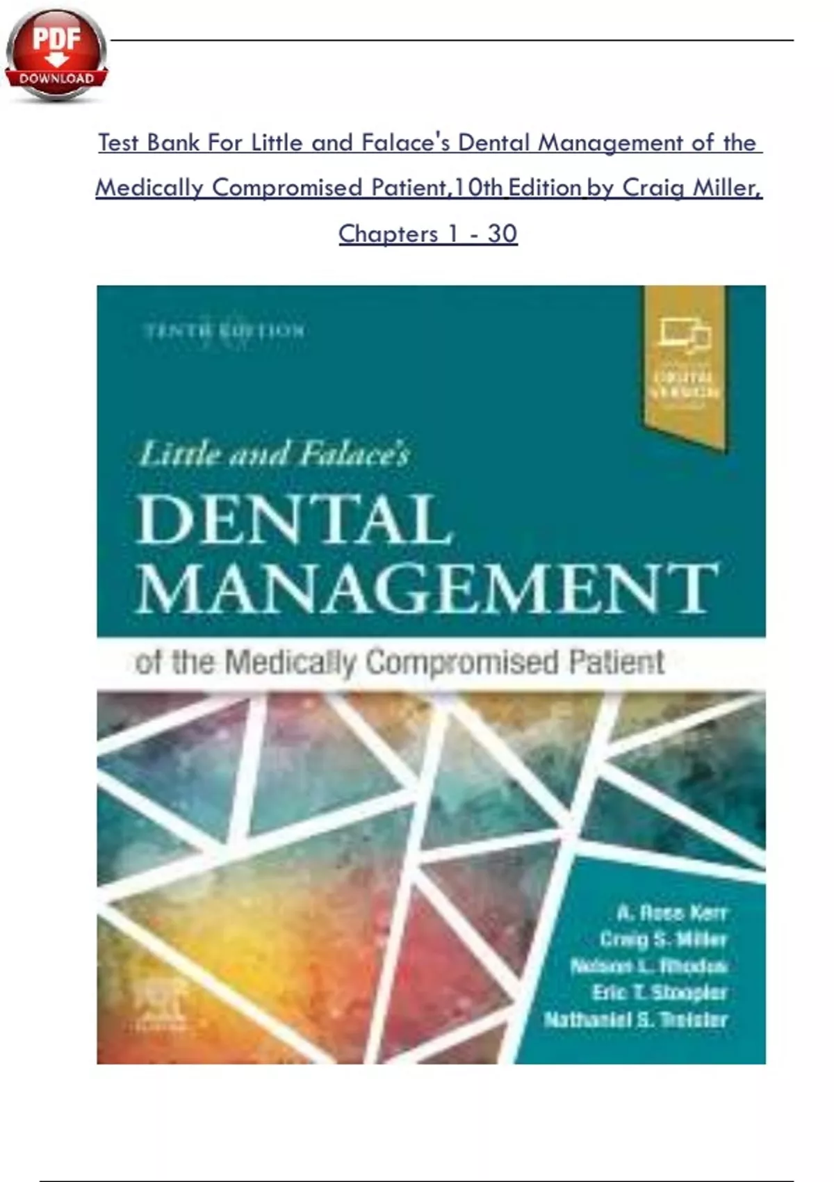 TEST BANK For Little and Falace's Dental Management of the Medically Compromised Patient, 10th Edition by Craig Miller, Verified Chapters 1 - 30, Complete Newest Version TEST BANK For Little and Falace's Dental Management of the Medically Compromised Patient, 10th Edition by Craig Miller, Verified Chapters 1 - 30, Complete Newest Version