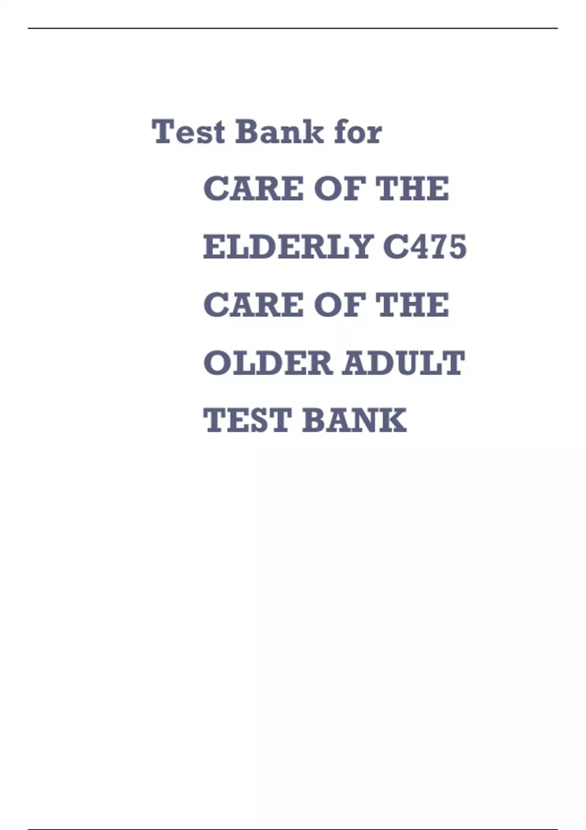 Care of The Older Adult -TEST BANK. Care of The Older Adult -TEST BANK. Care of The Older Adult -TEST BANK.