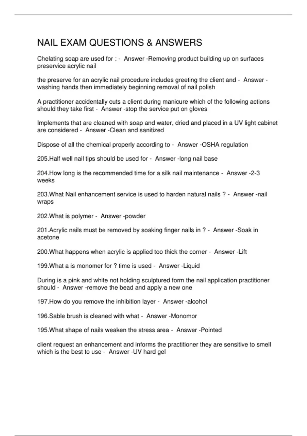 NAIL EXAM QUESTIONS & ANSWERS