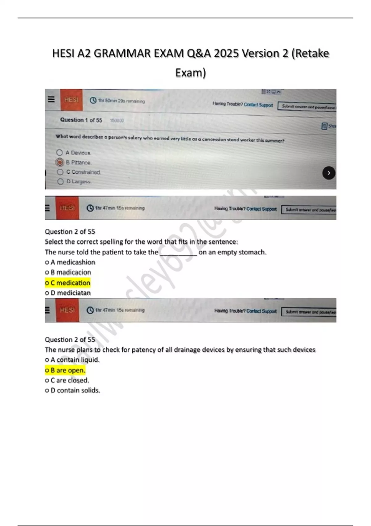 HESI A2 GRAMMAR EXAM Q&A 2025 Version 2 (Retake