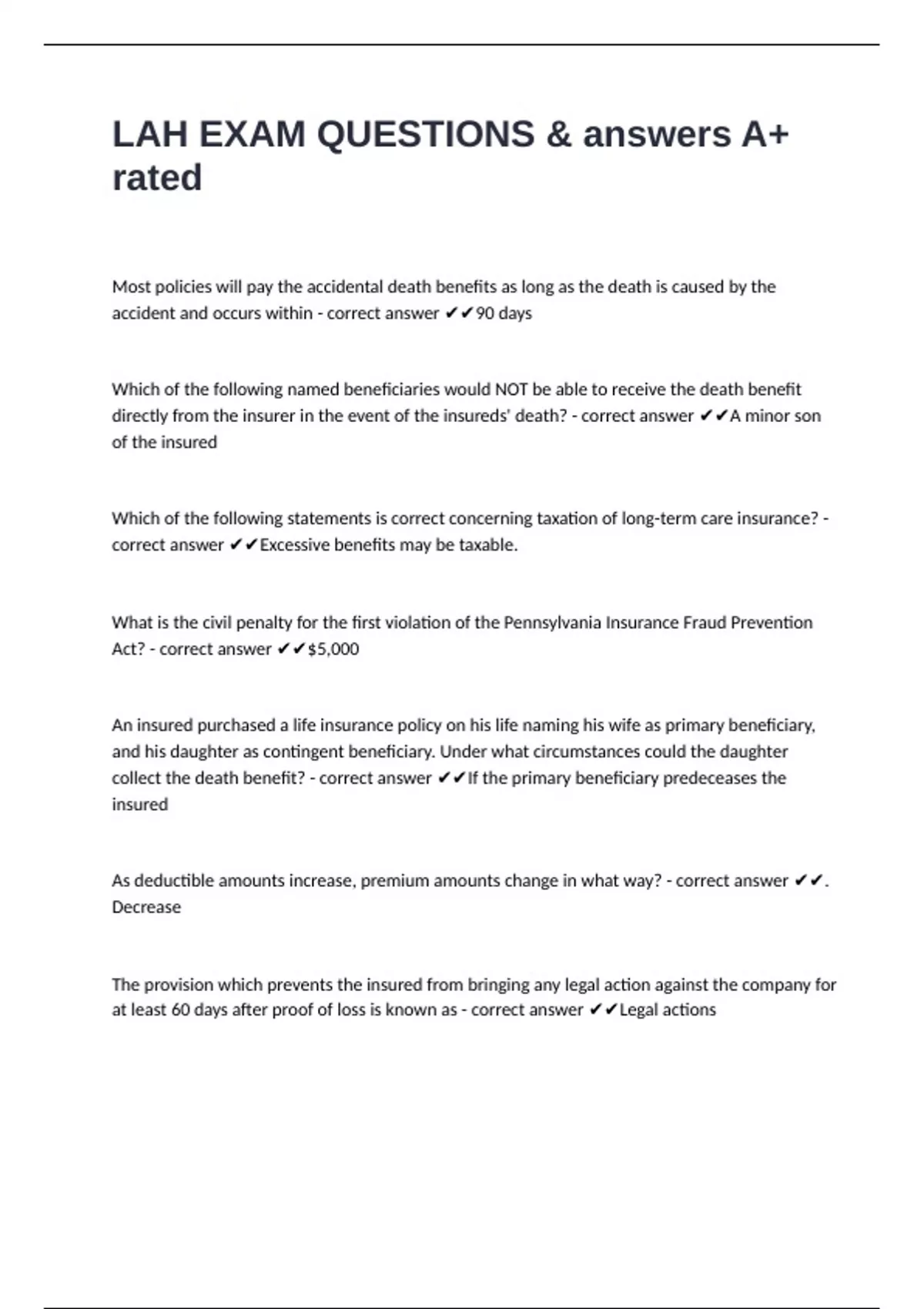 As deductible amounts increase, premium amounts change in what way? - correct answer ✔✔.