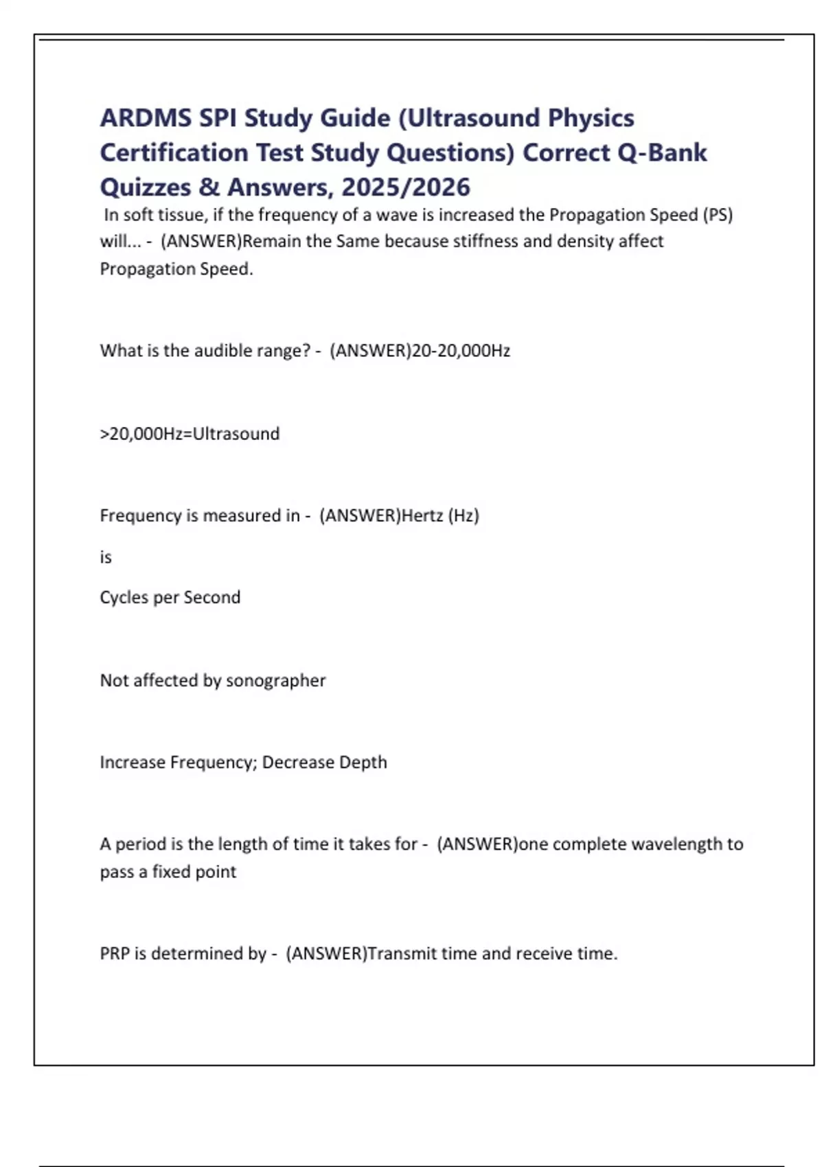 ARDMS SPI Study Guide (Ultrasound Physics