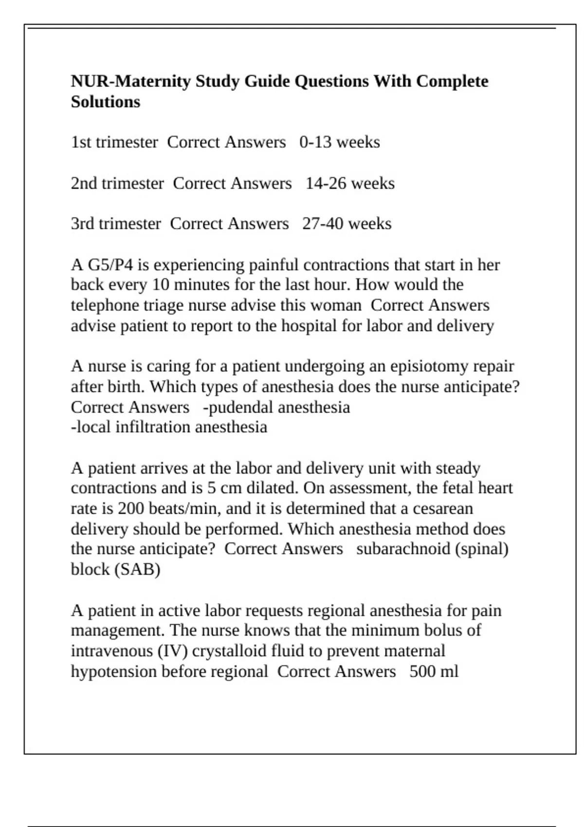 NUR-Maternity Study Guide Questions With Complete