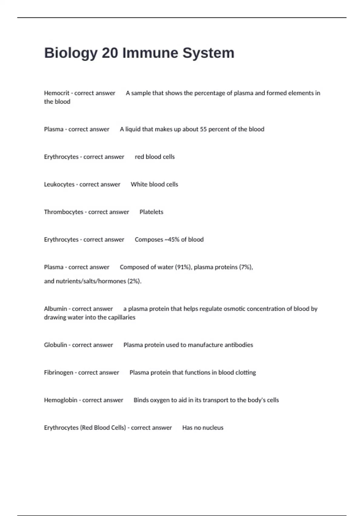 Albumin - correct answer a plasma protein that helps regulate osmotic concentration of blood by
