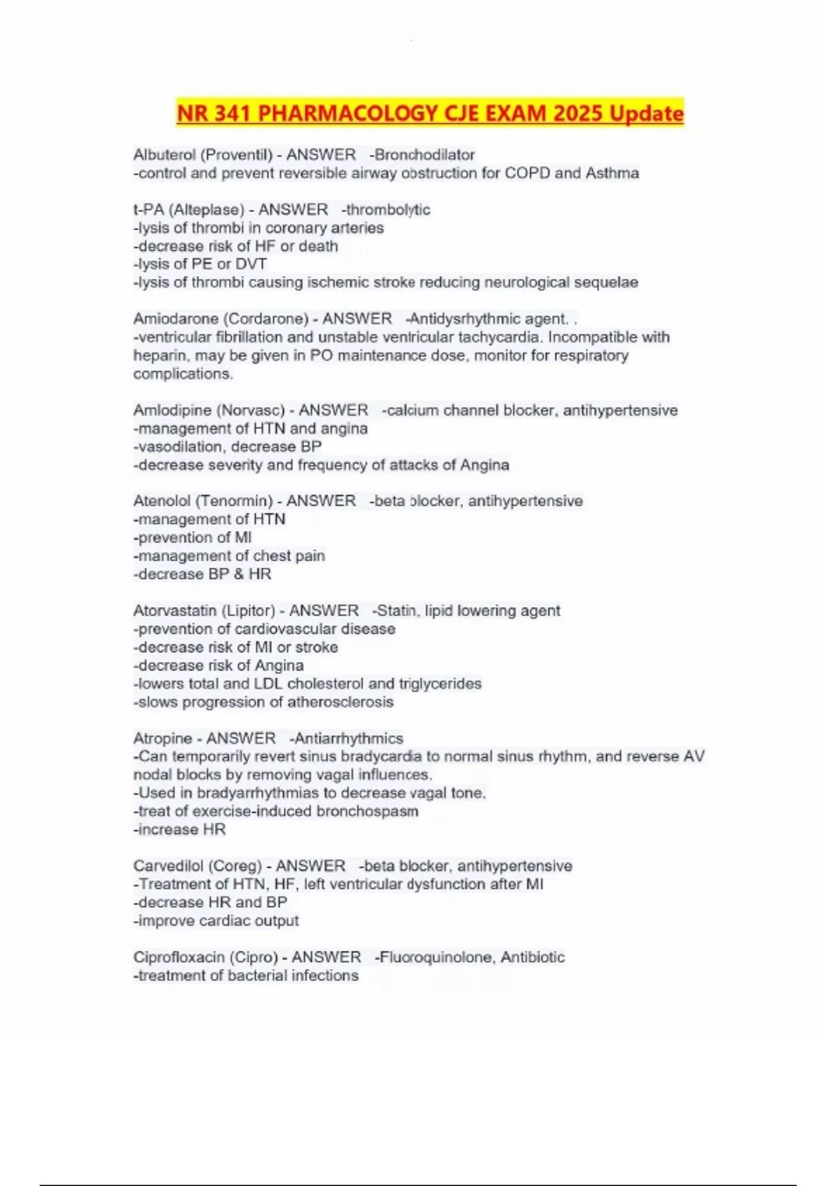 NR 341 PHARMACOLOGY CJE EXAM 2025 UpdateNR 341 PHARMACOLOGY CJE EXAM 2025 Update