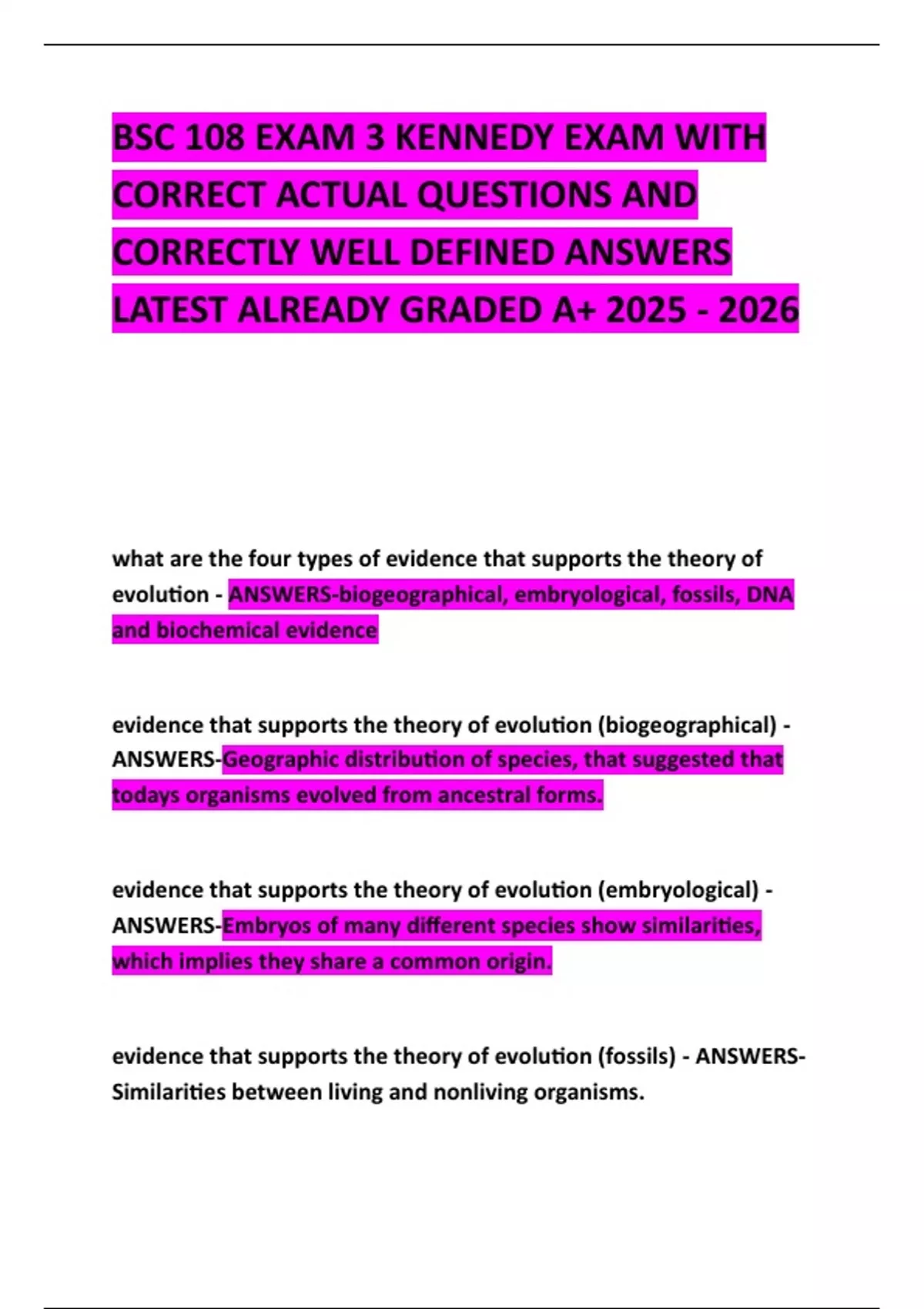 evidence that supports the theory of evolution (fossils) - ANSWERS-