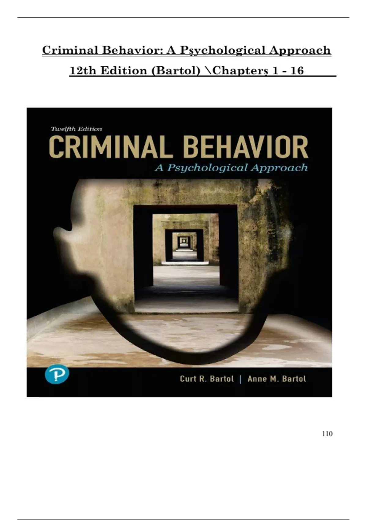 Instant Download PDF – Comprehensive, verified exam prep for Criminal Behavior: A Psychological Approach (12th Edition by Curt R. Bartol & Anne M. Bartol). Covers all chapters 1–16 with accurate, up-to-date practice questions and detailed answers. Perfect for criminology, psychology, and criminal justice students preparing for exams or assignments. Includes real-world case applications, key theories, and in-depth chapter coverage to help you score higher and study smarter. Compatible with online and in-person coursework.