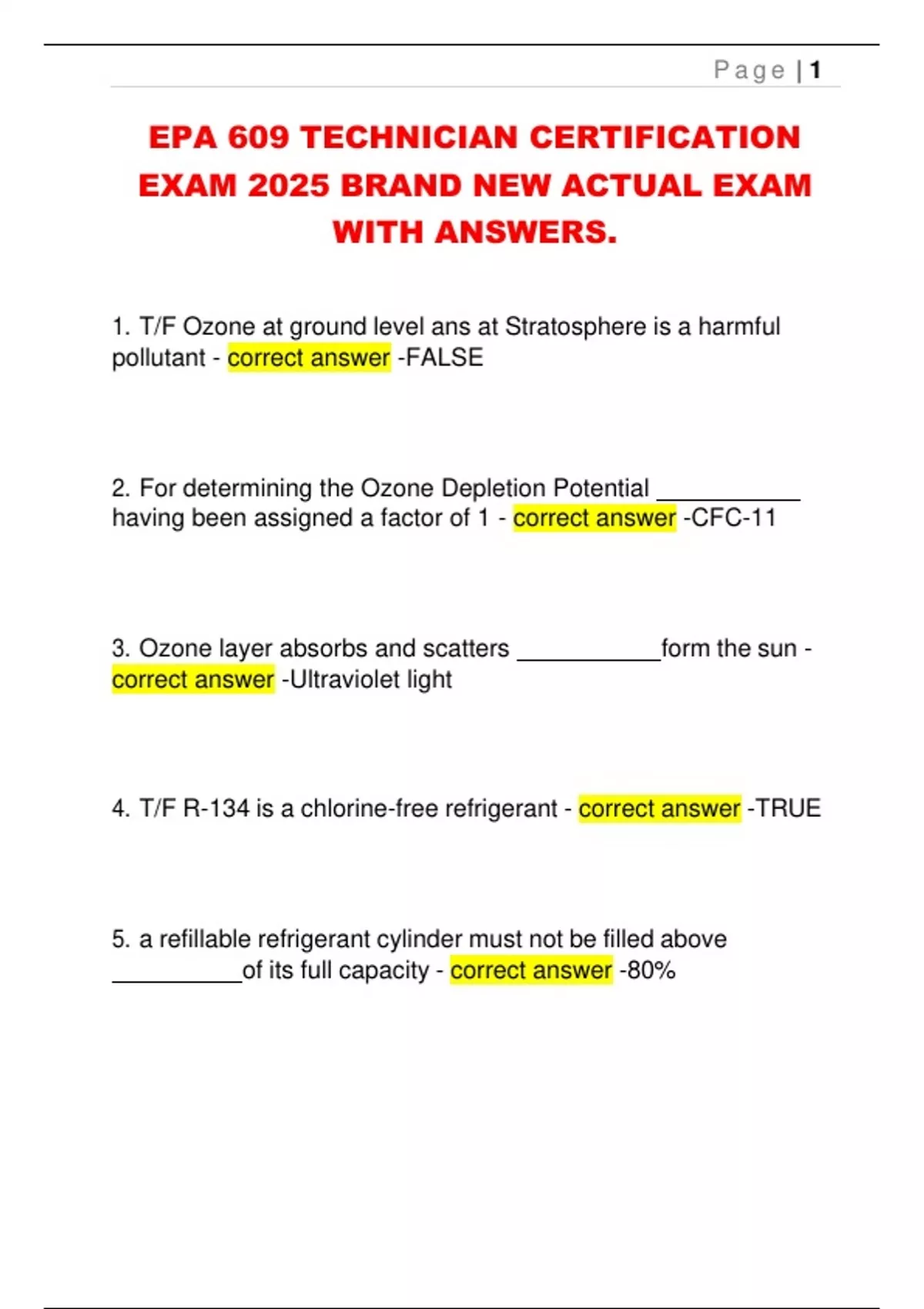 EPA 609 Technician Certification Exam Practice Questions and Answers | Complete 2025/2026 Test Prep Guide for Refrigerant Recovery and A/C Systems