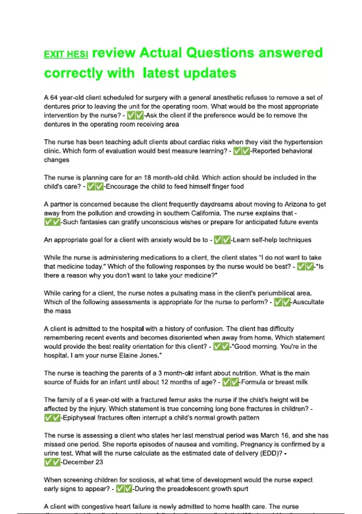 EXIT HESI review Actual Questions answered correctly with latest updates