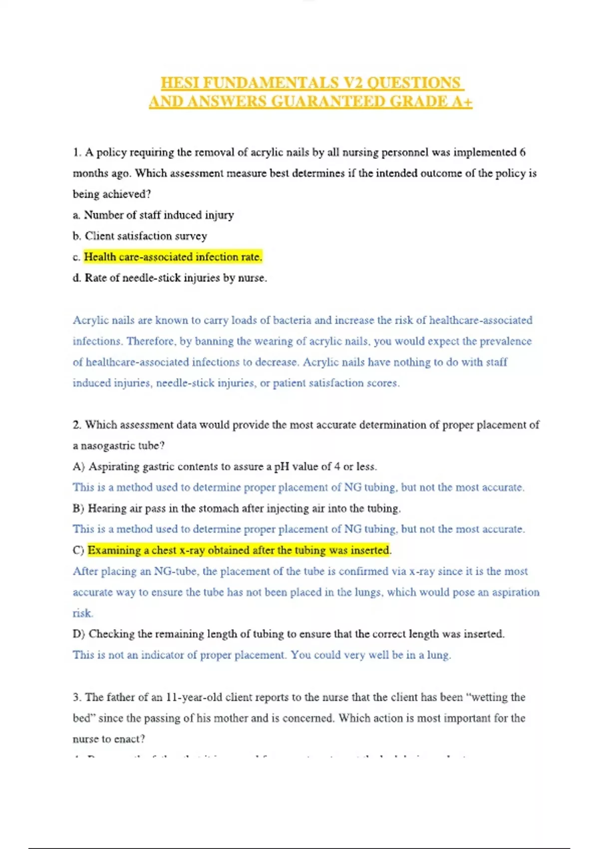 HESI Fundamentals V2 Questions & Answers Guaranteed Grade A+ HESI fundamentals v2 question