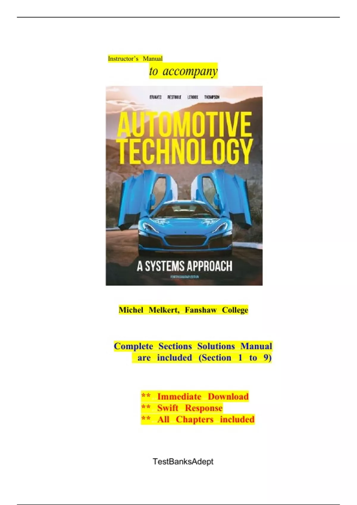 Solutions for Automotive Technology, A Systems Approach, 4th Canadian Edition Erjavec (All Sections Chapters included)