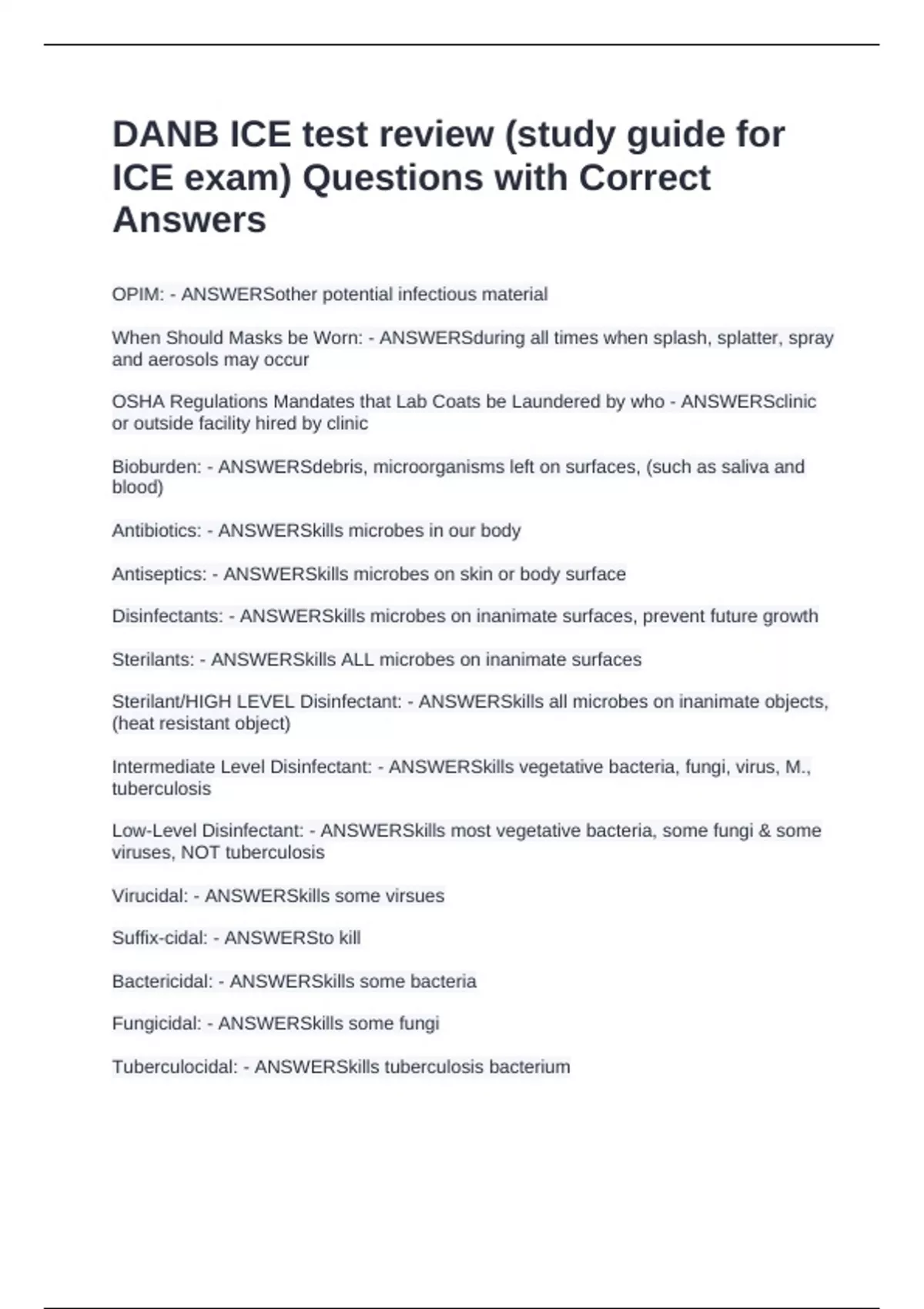 Intermediate Level Disinfectant: - ANSWERSkills vegetative bacteria, fungi, virus, M.,
