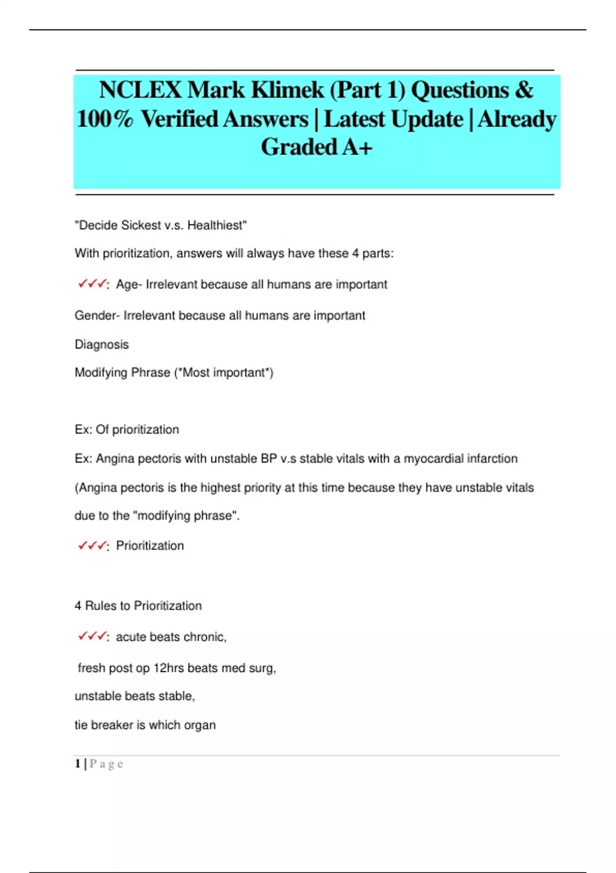 Welcome to The Elite Study Guides Seller, your ultimate destination for high-quality, verified study materials trusted by students, educators, and professionals across the globe. We specialize in providing A+ graded exam files, practice questions, complete study guides, and certification prep tailored to a wide range of academic and professional fields. Whether you're preparing for nursing licensure (NCLEX, ATI, HESI, ANCC, AANP), healthcare certifications (ACLS, BLS, PALS, PMHNP, AGNP), standardized tests (TEAS, HESI, PAX, NLN), or university-specific exams (WGU, Portage Learning, Georgia Tech, and more), our documents are 100% correct, up-to-date for 2025/2026, and reviewed for accuracy. What makes Elite study guides Seller stand out: ✅ Verified Questions & Correct Answers
