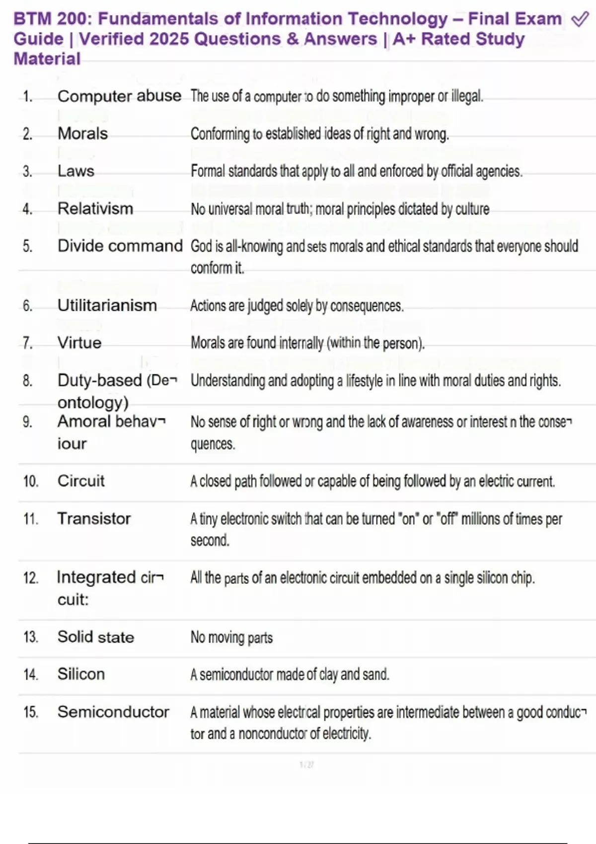 BTM 200: Fundamentals of Information Technology – Final Exam Guide | Verified 2025 Questions & Answers | A+ Rated Study Material