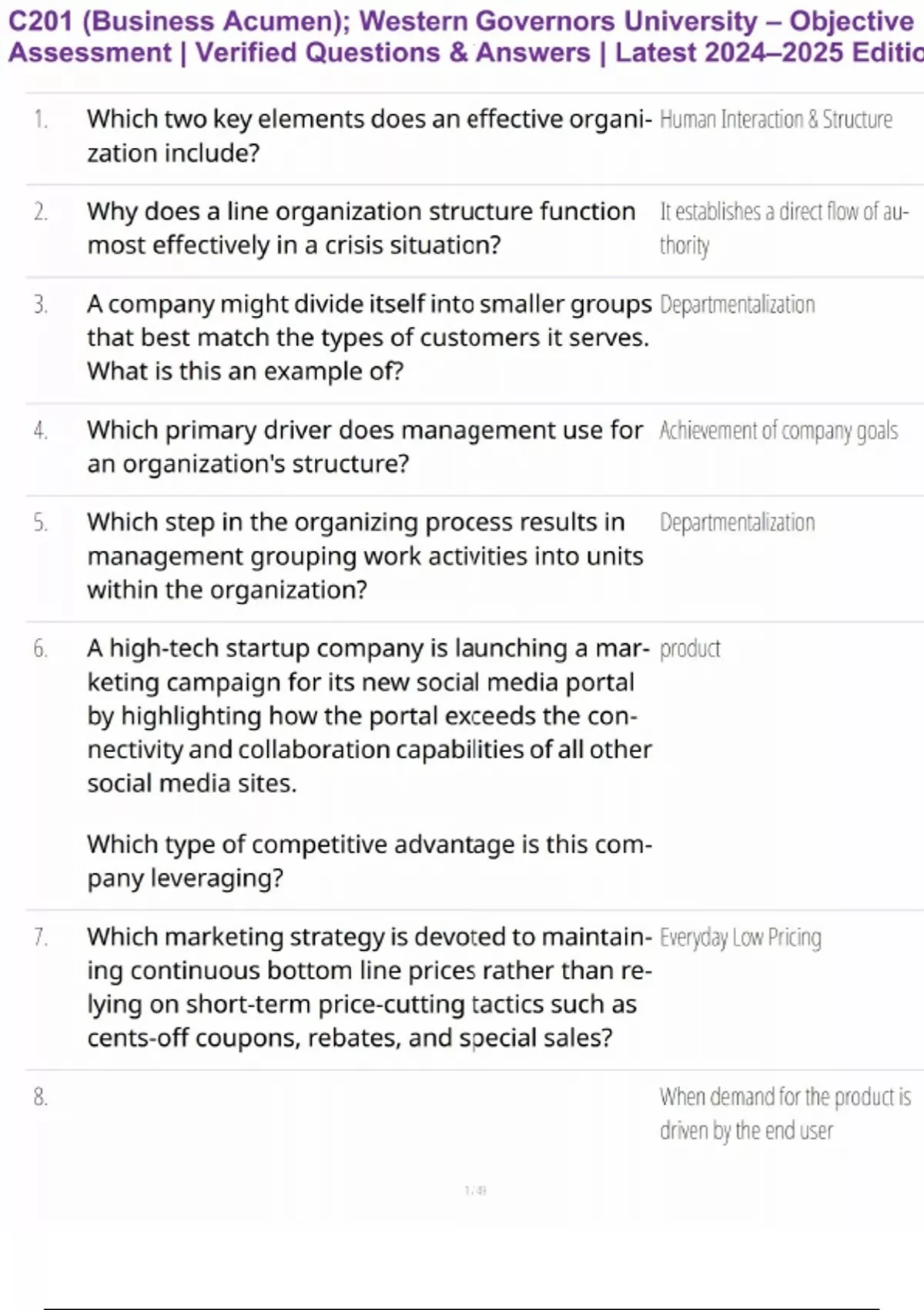 Master the WGU C201 Business Acumen Objective Assessment with this updated 2024–2025 study guide. Includes real exam-style questions and verified correct answers designed to help you understand core business principles and pass with confidence.