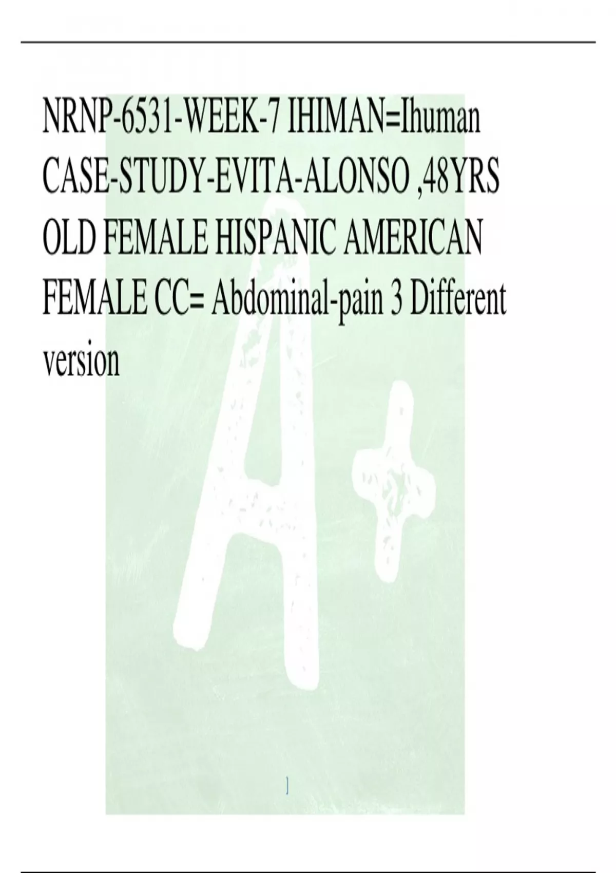 NRNP-6531-WEEK-7 IHIMAN=Ihuman CASE-STUDY-EVITA-ALONSO ,48YRS OLD FEMALE HISPANIC AMERICAN FEMALE CC= Abdominal-pain 3 Different version
