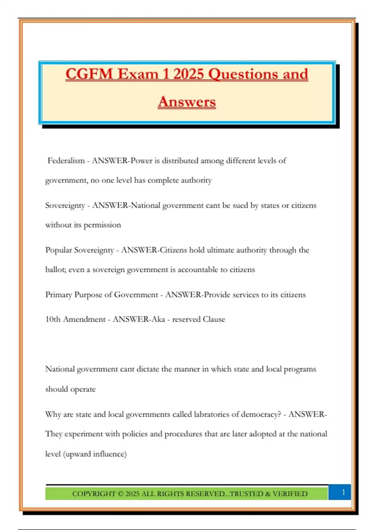CGFM Exam 1 2025 Questions and