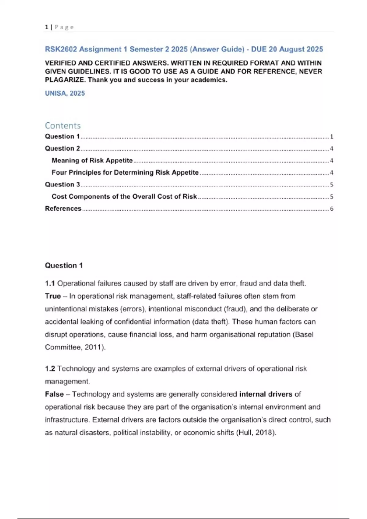 RSK2602 Assignment 1 Semester 2 2025 Questions with certified answers