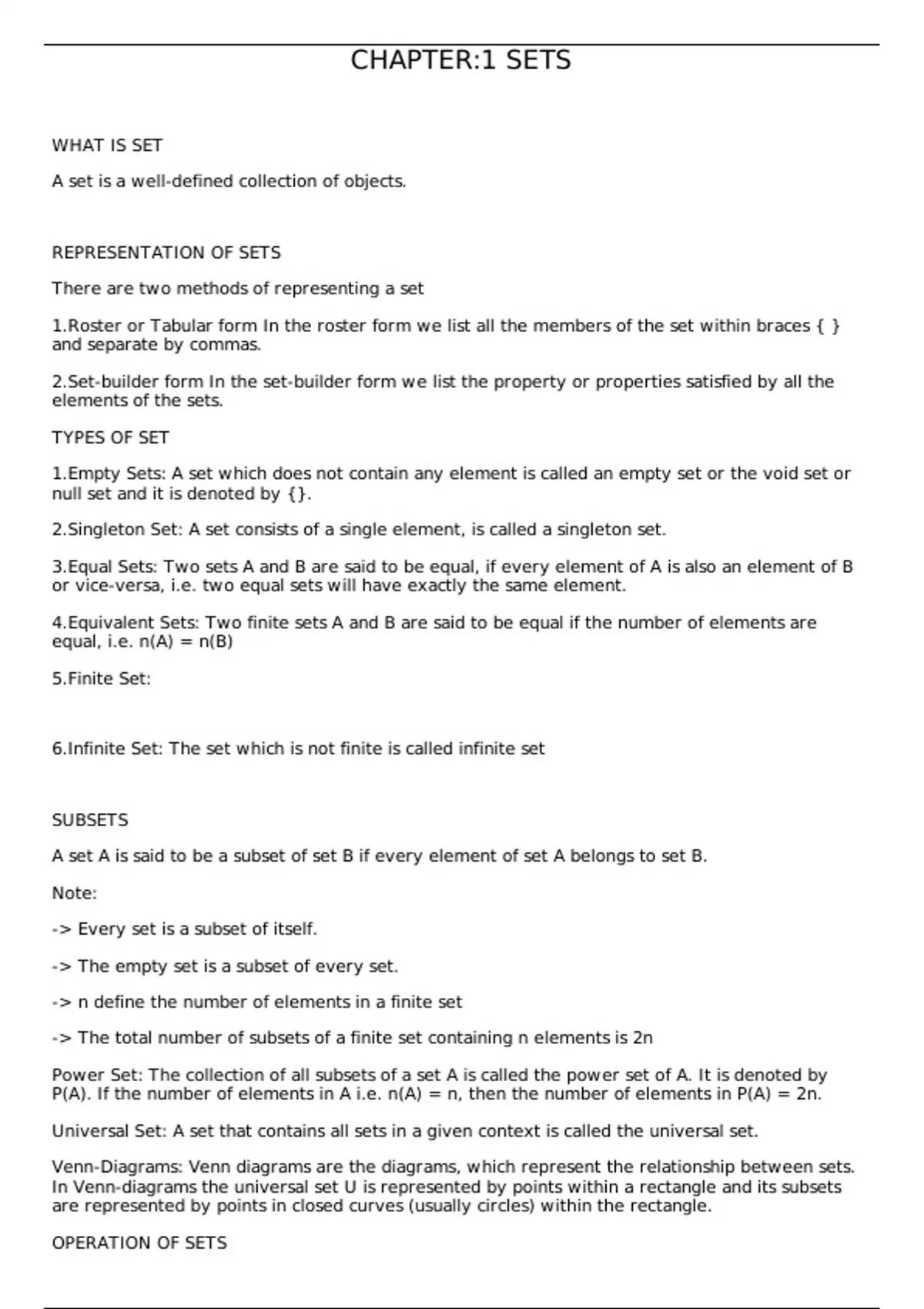 A comprehensive and easy-to-understand PDF covering all key concepts of Sets for Class 11 Maths. Perfect for quick revision, this notes file includes definitions, properties, solved examples, and important formulas to help you master set theory with confidence and boost your exam preparation.