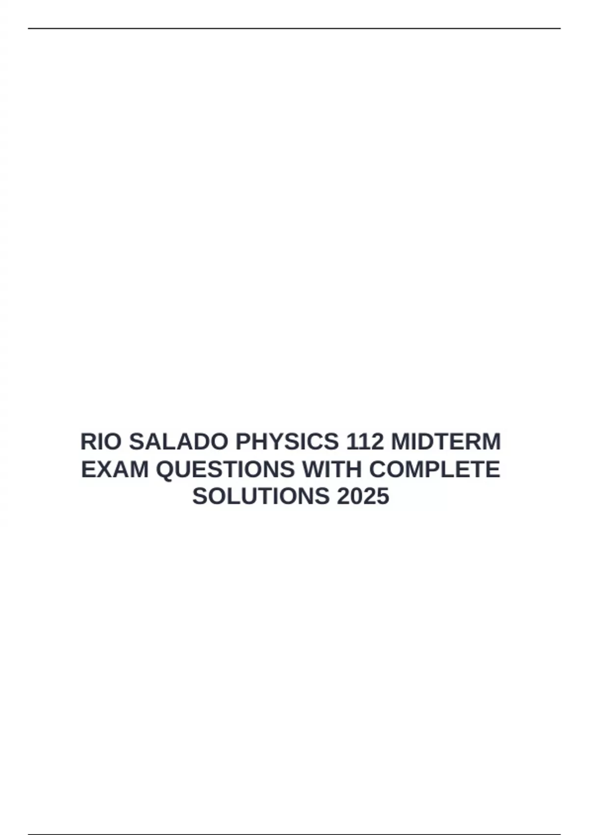 RIO SALADO PHYSICS 112 MIDTERM EXAM QUESTIONS WITH COMPLETE SOLUTIONS 2025