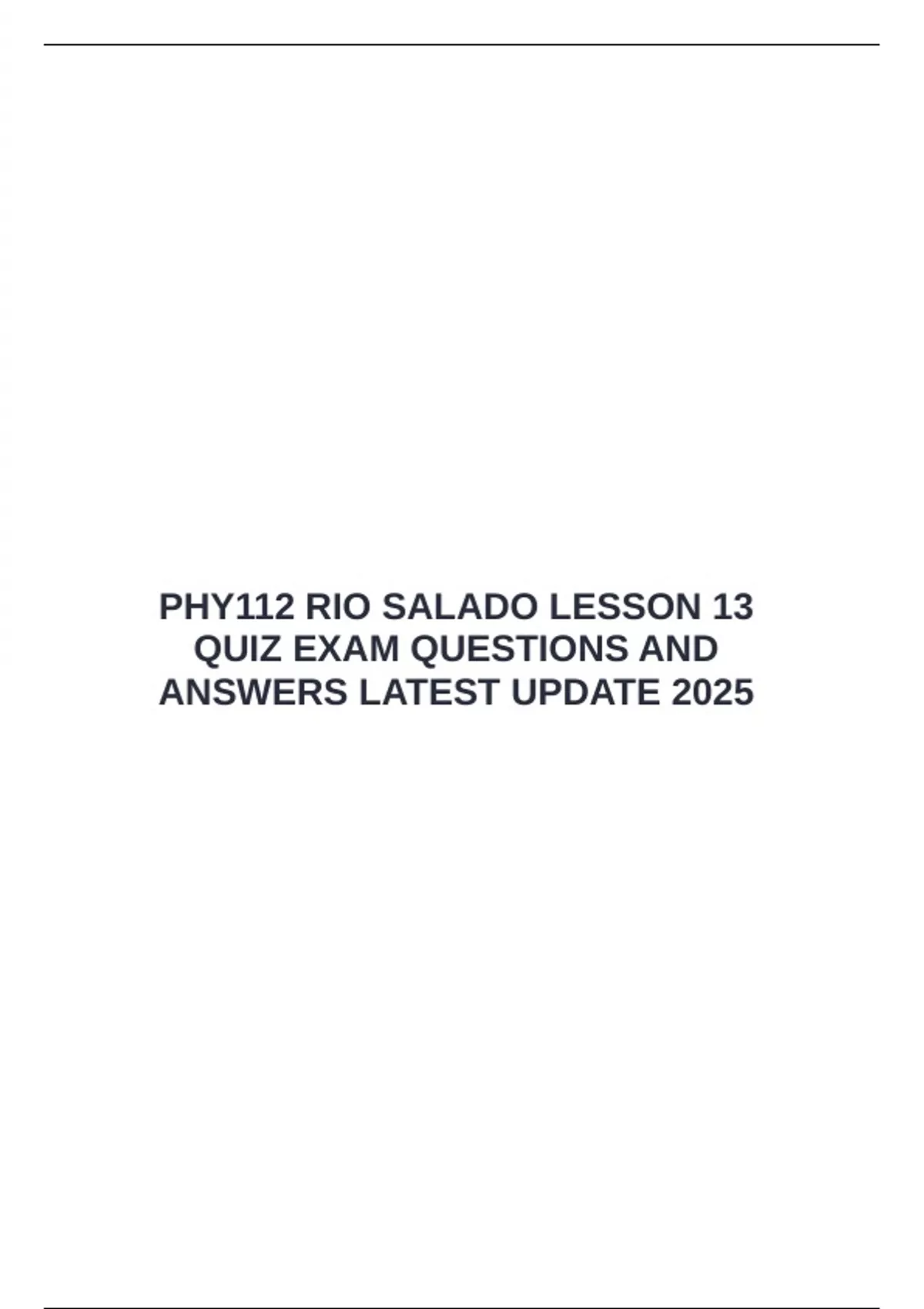 PHY112 RIO SALADO LESSON 13 QUIZ EXAM QUESTIONS AND ANSWERS LATEST UPDATE 2025