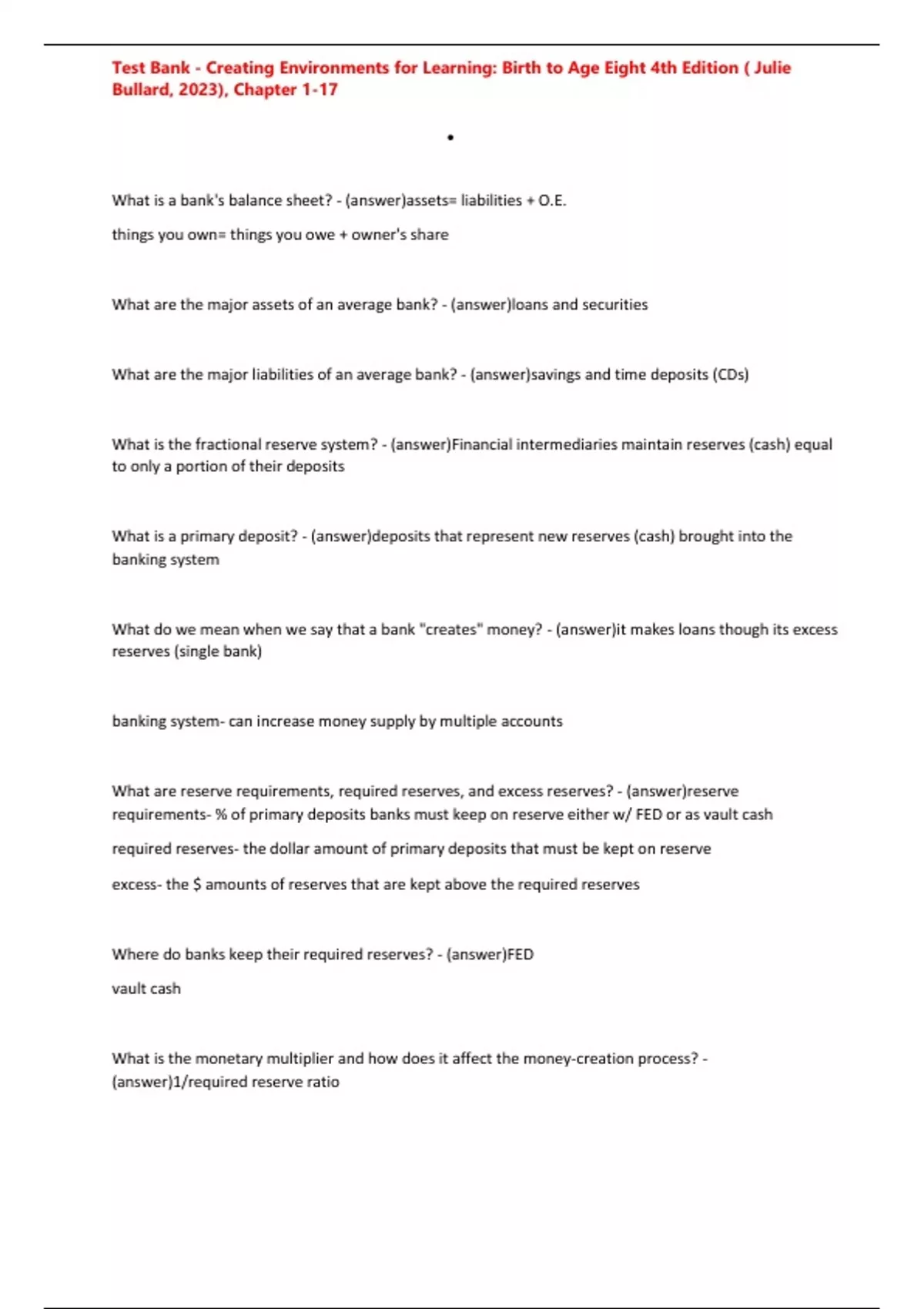 Test Bank - Creating Environments for Learning: Birth to Age Eight 4th Edition ( Julie