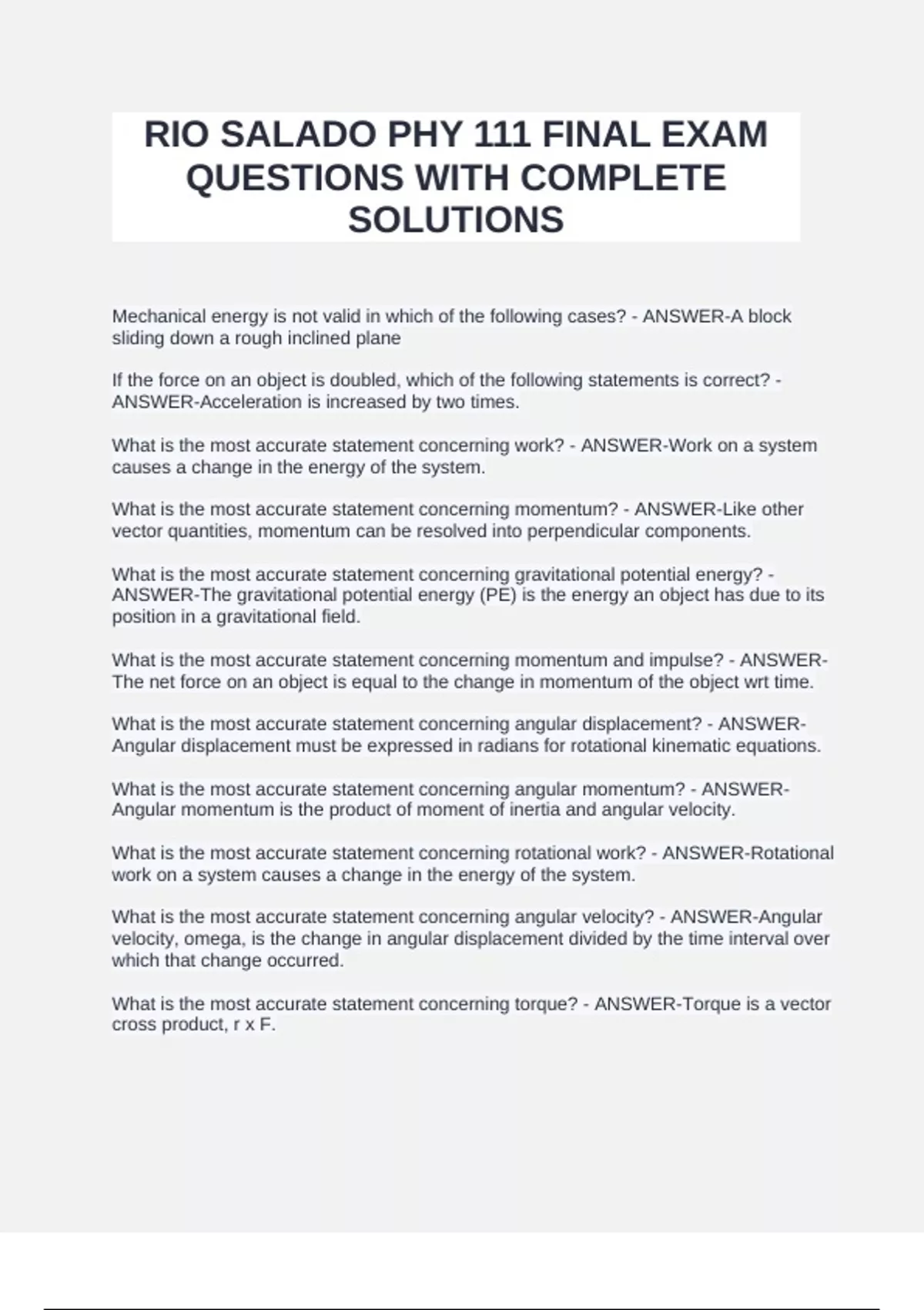 What is the most accurate statement concerning rotational work? - ANSWER-Rotational