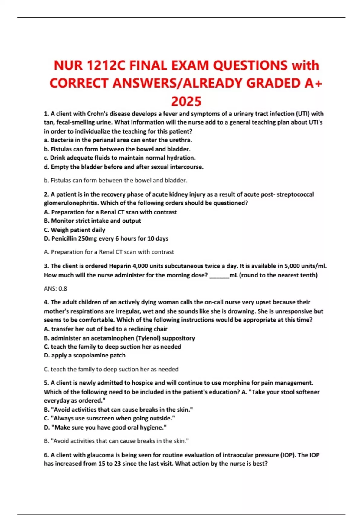 NUR 1212C FINAL EXAM QUESTIONS with