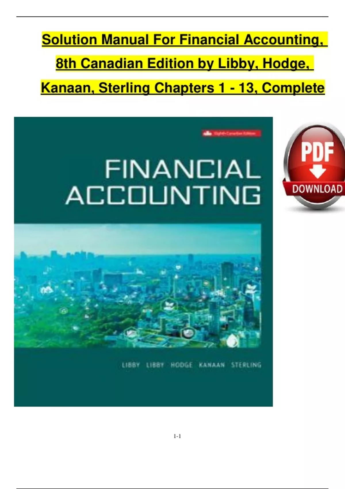 Solution Manual For Financial Accounting, 8th Canadian Edition by Libby, Hodge, Kanaan, Sterling Chapters 1 - 13, Complete