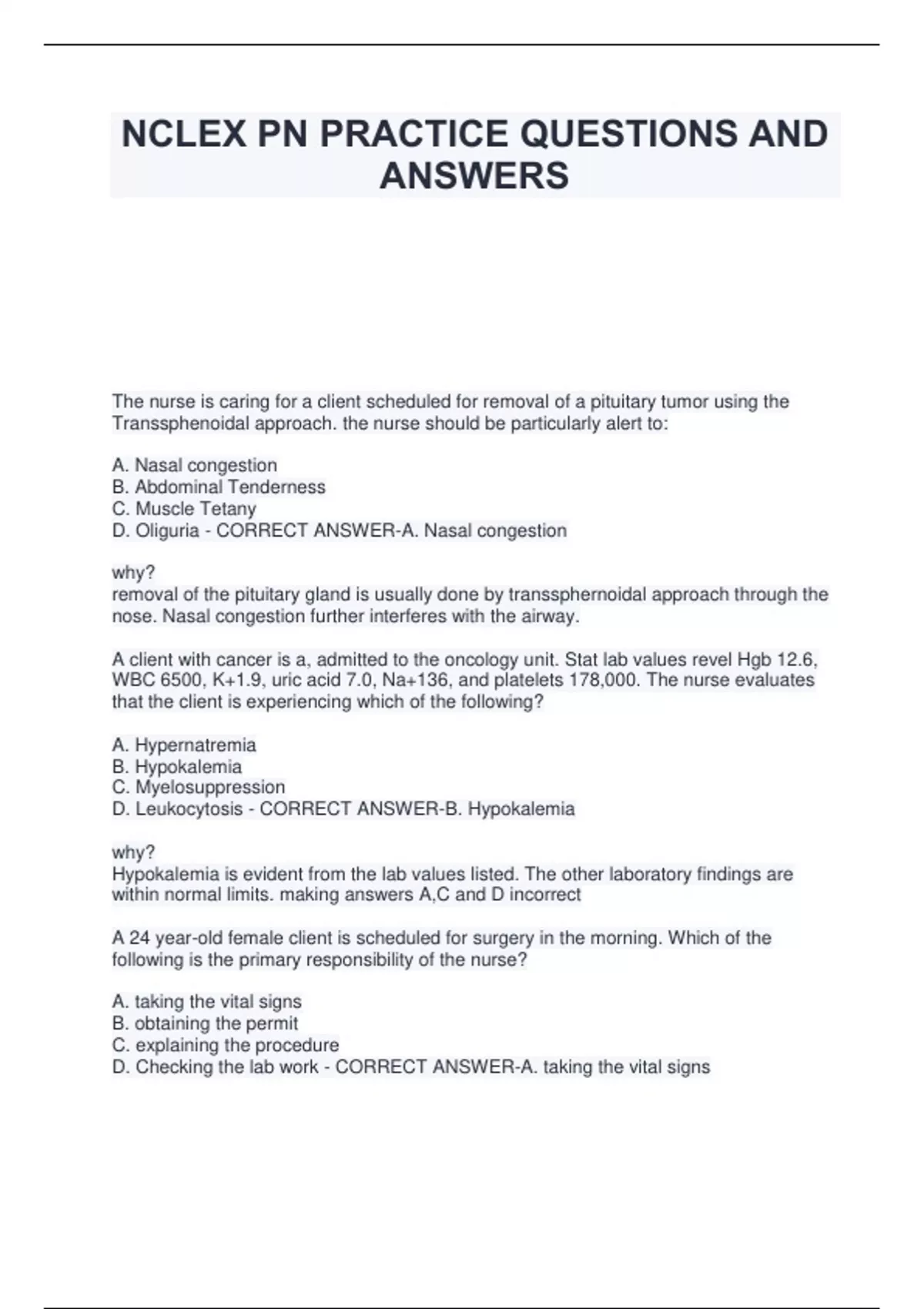D. Leukocytosis - CORRECT ANSWER-B. Hypokalemia