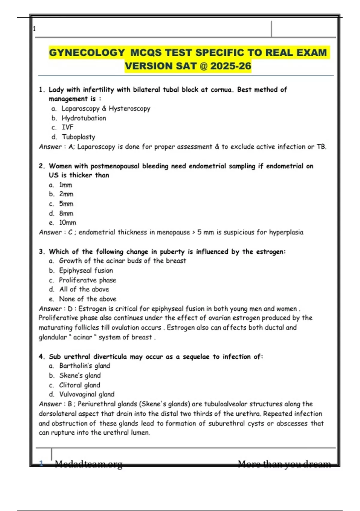 GYNECOLOGY MCQS TEST SPECIFIC TO REAL EXAM