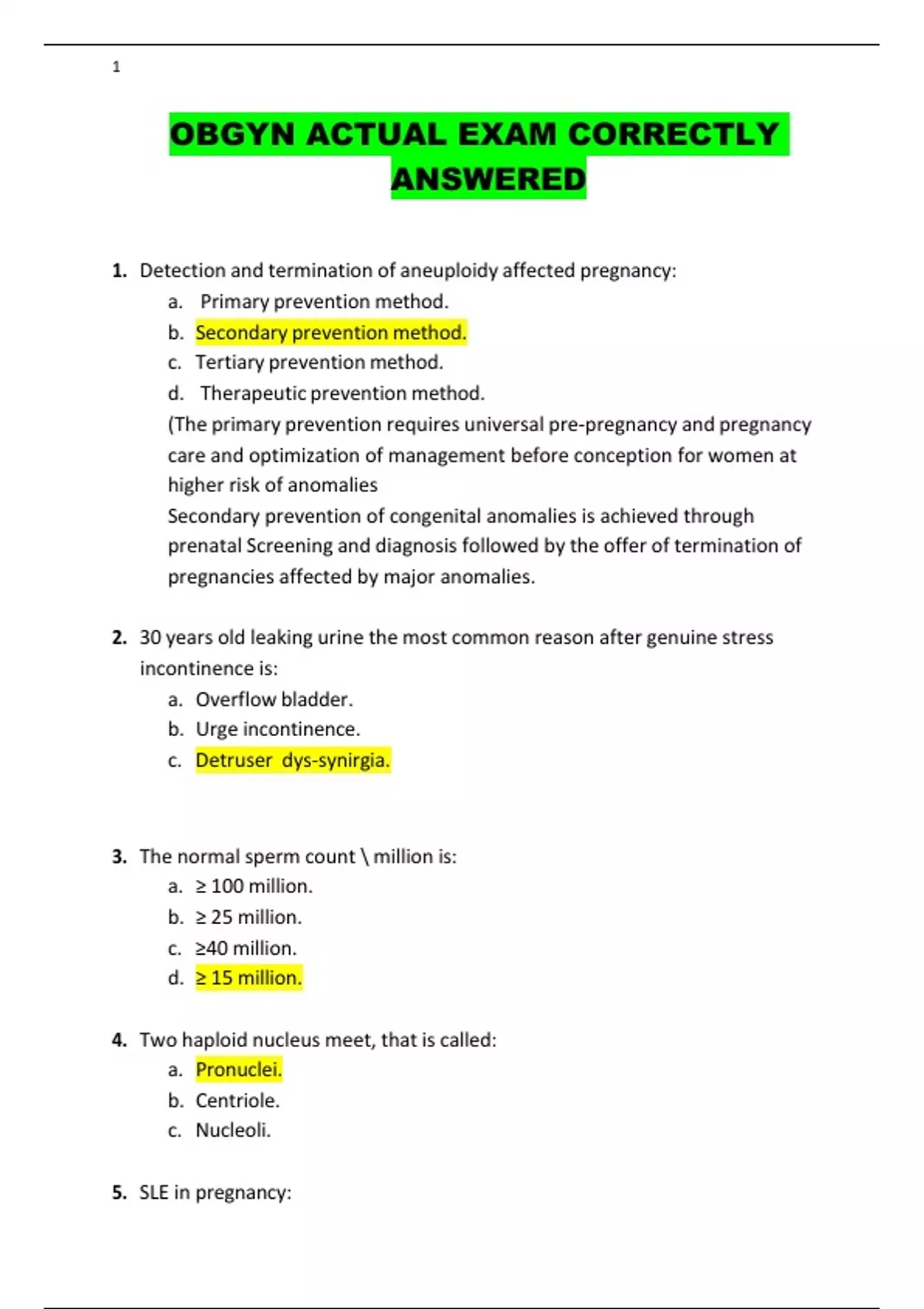 OBGYN ACTUAL EXAM CORRECTLY