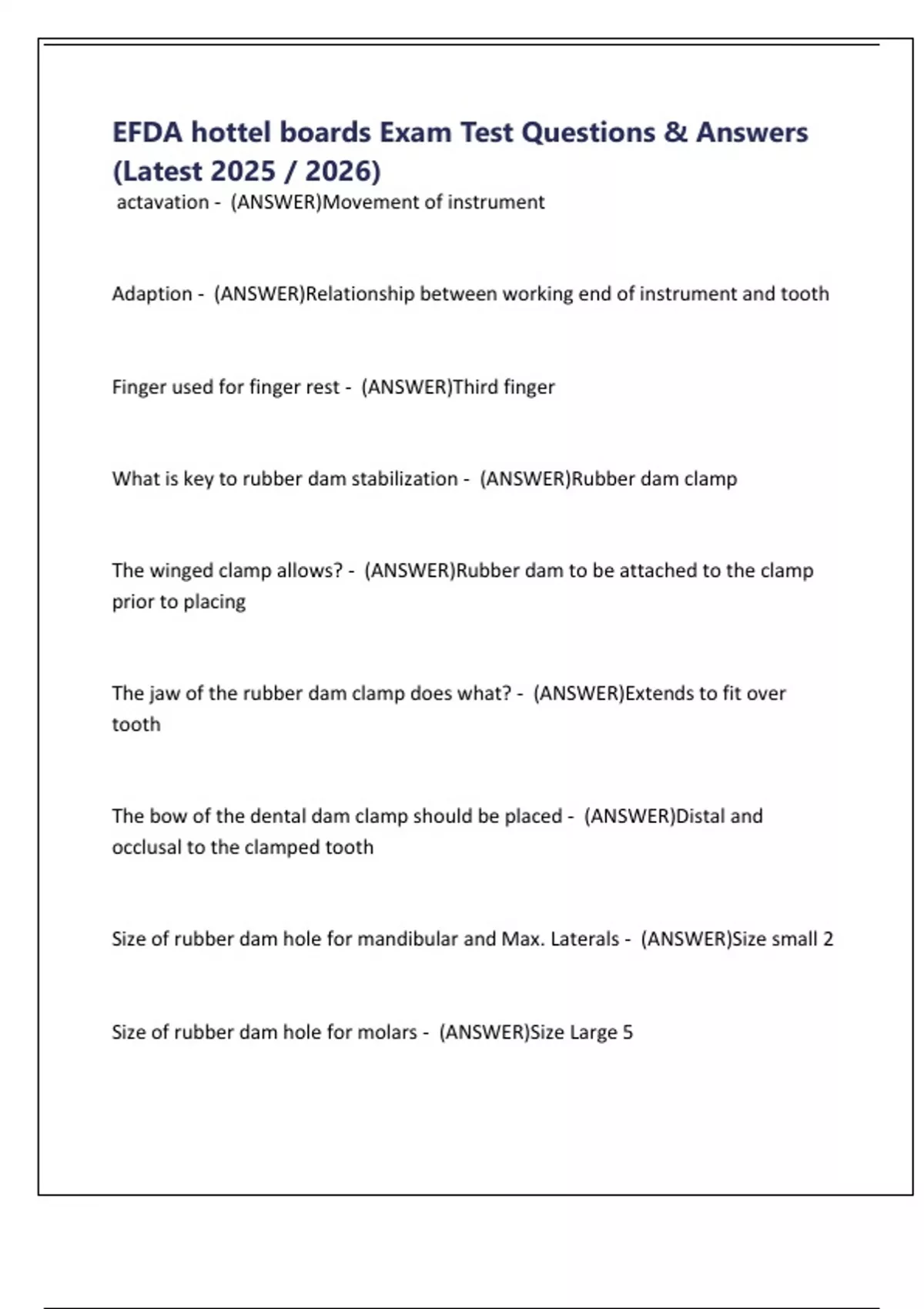 EFDA hottel boards Exam Test Questions & Answers (Latest 2025 / 2026)