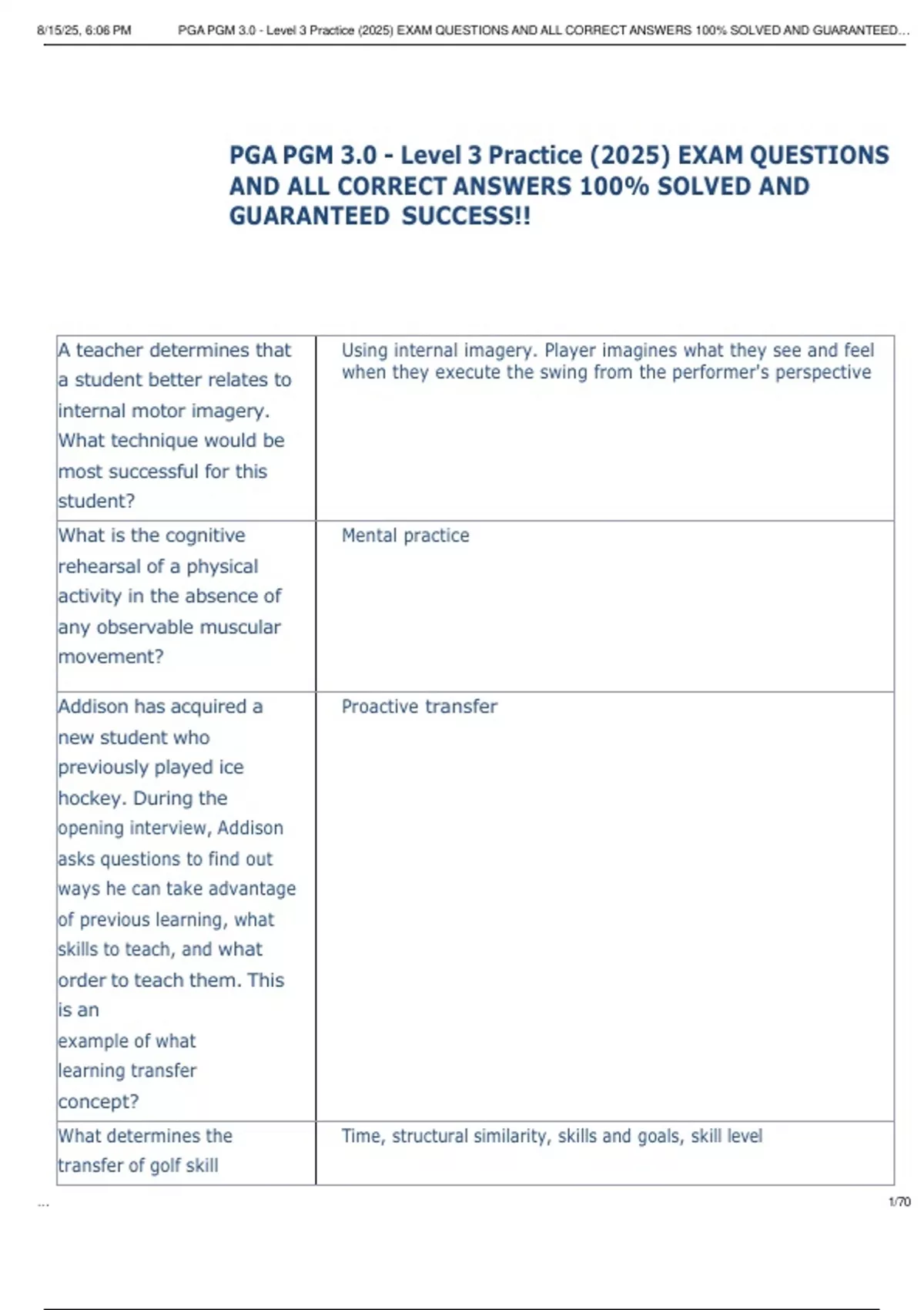 8/15/25, 6:06 PM PGA PGM 3.0 - Level 3 Practice (2025) EXAM QUESTIONS AND ALL CORRECT ANSWERS 100% SOLVED AND GUARANTEED…