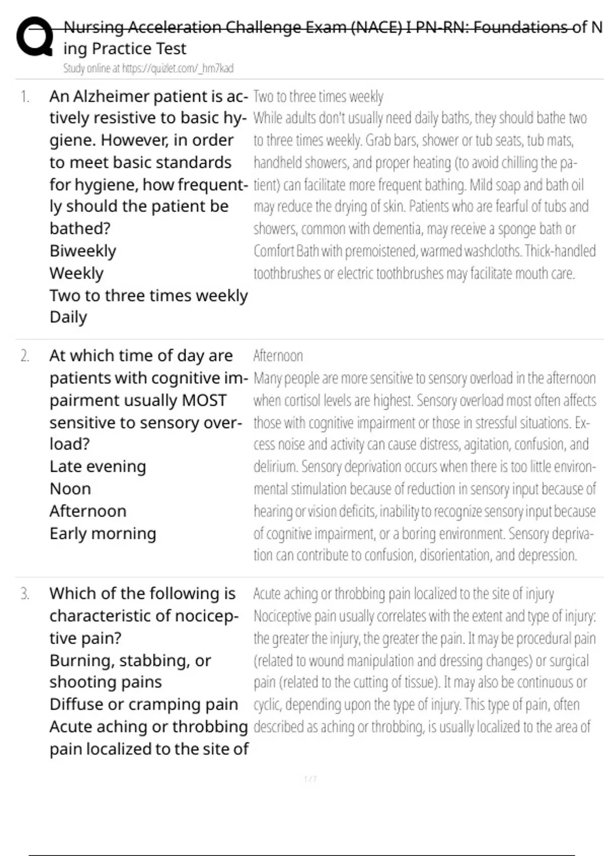1. An Alzheimer patient is ac- Two to three times weekly