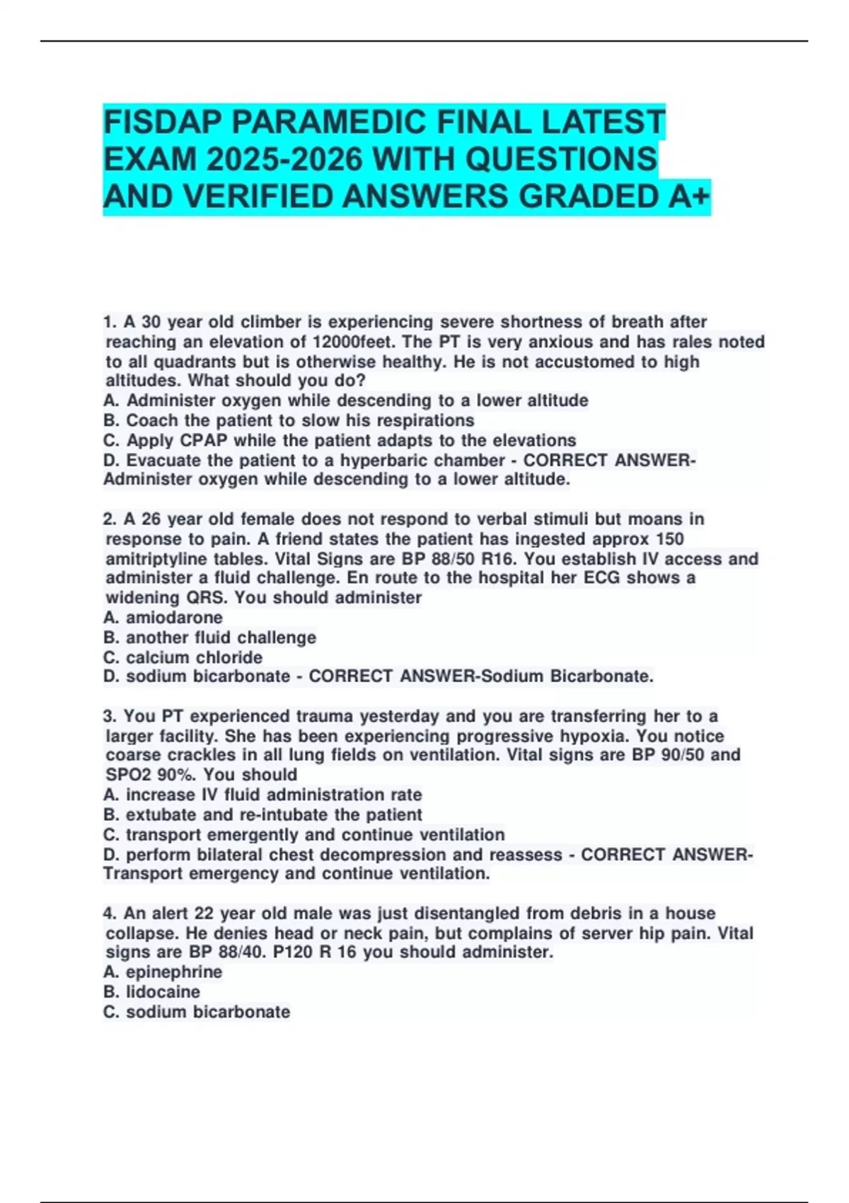 FISDAP PARAMEDIC FINAL LATEST EXAM WITH QUESTIONS AND VERIFIED ANSWERS GRADED A+FISDAP PARAMEDIC FINAL LATEST EXAM WITH QUESTIONS AND VERIFIED ANSWERS GRADED A+FISDAP PARAMEDIC FINAL LATEST EXAM WITH QUESTIONS AND VERIFIED ANSWERS GRADED A+FISDAP PARAMEDIC FINAL LATEST EXAM WITH QUESTIONS AND VERIFIED ANSWERS GRADED A+