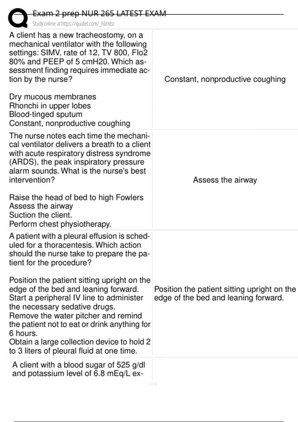A client with Diabetes Insipidus whose A client receiving mechanical ventilation