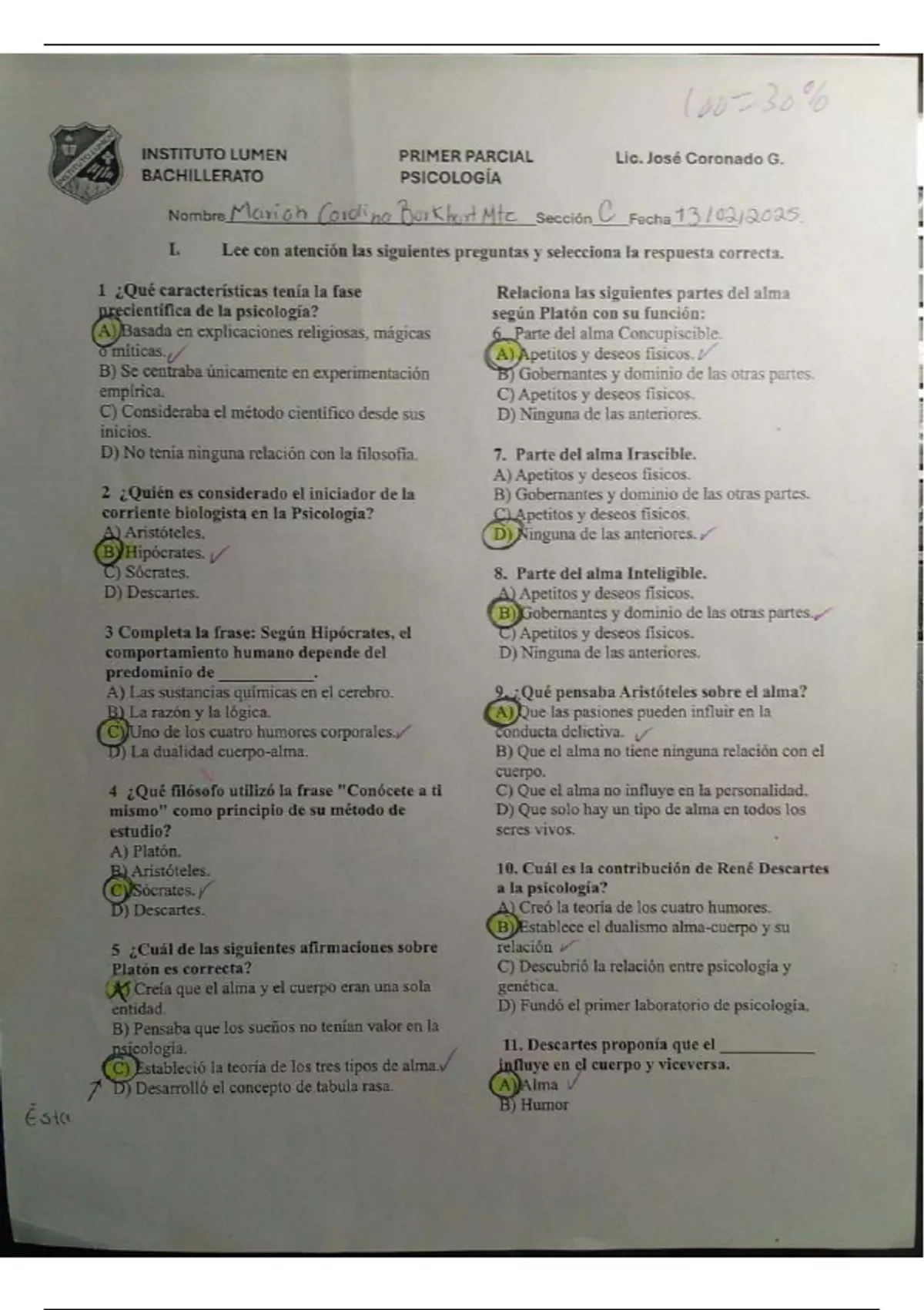 Te ofrezco mi primer examen mensual de Psicología. Incluye TODAS las preguntas y TODAS las respuestas para que puedas estudiar y obtener las mejores calificaciones en tu examen. ¡Mucha suerte!