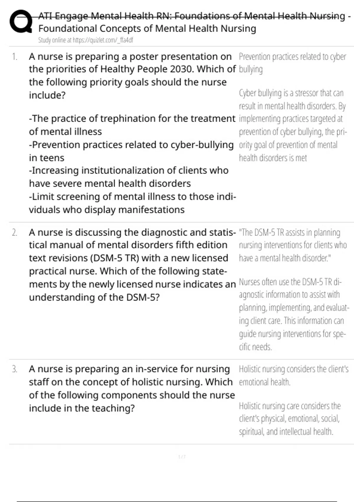 2. A nurse is discussing the diagnostic and statis- "The DSM-5 TR assists in planning