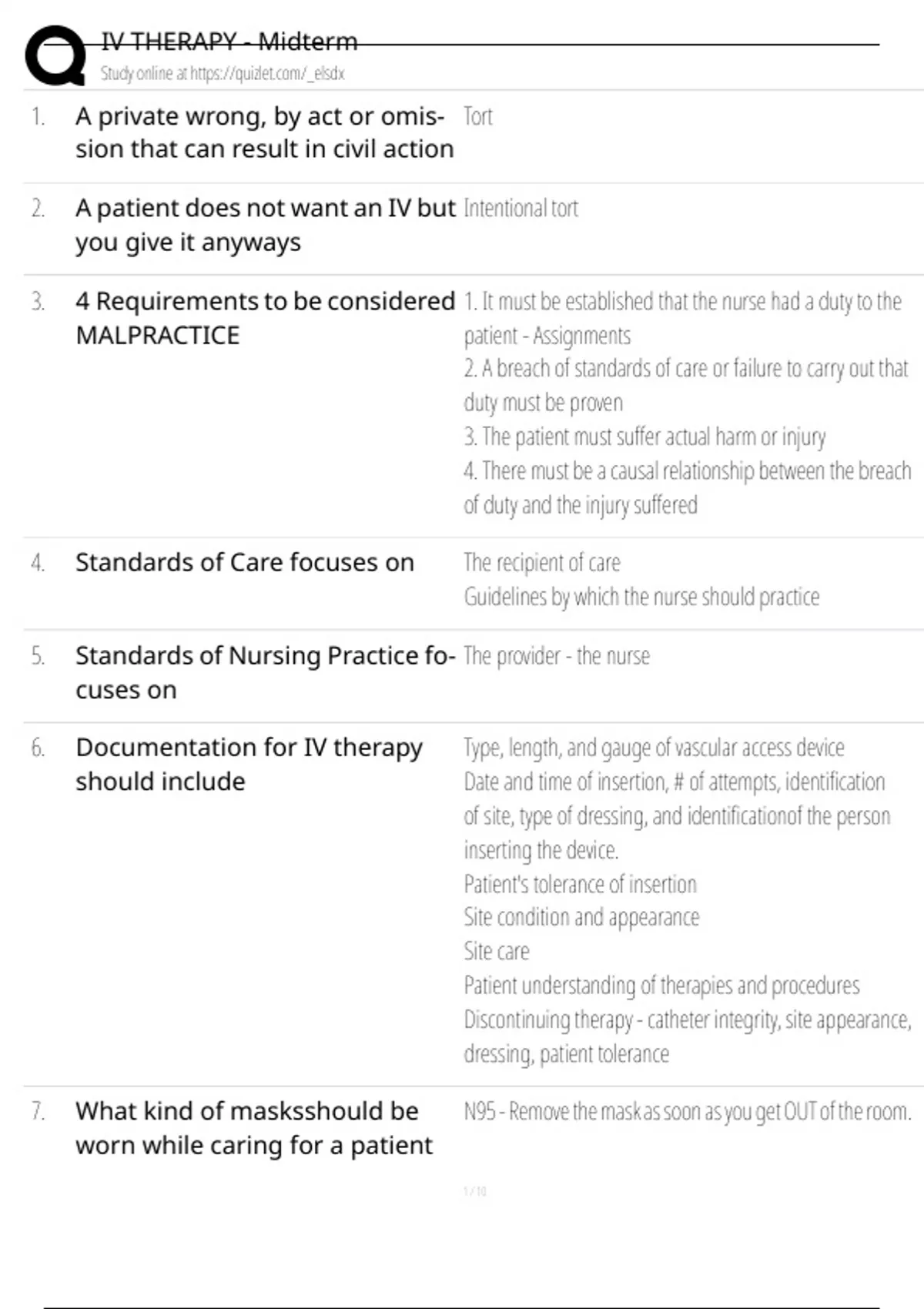 6. Documentation for IV therapy Type, length, and gauge of vascular access device